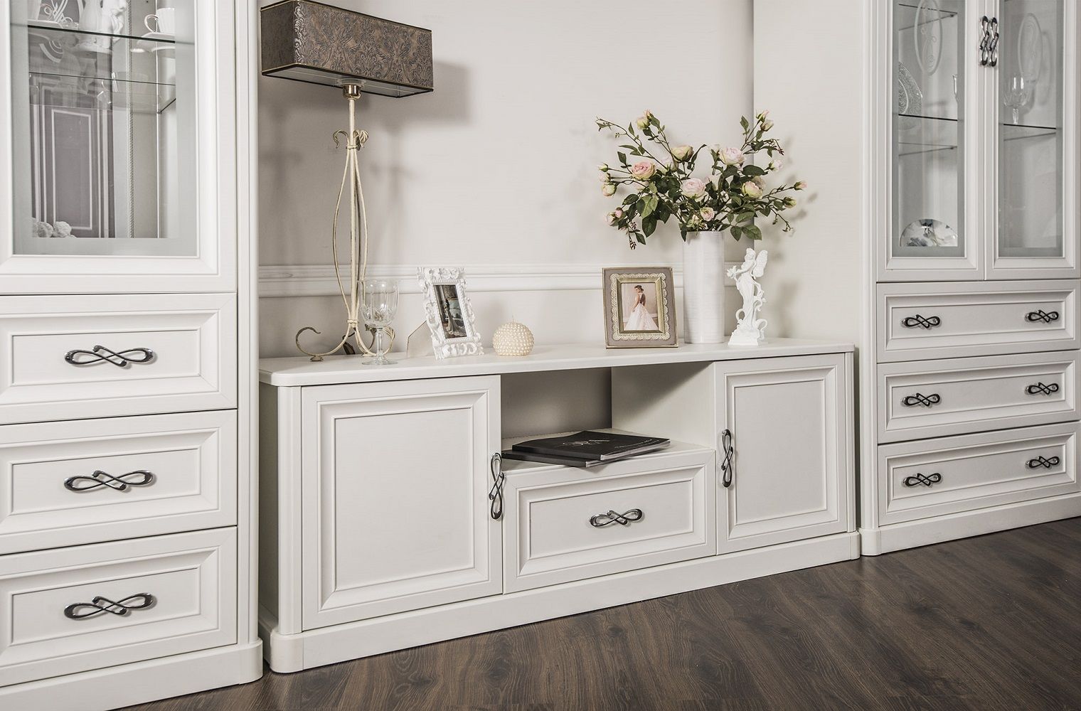 Мебель для гостиной «Мишель» — это модульная стенка, способная наполнить комнату теплом и уютом. Корпус каждого отдельного изделия выполнен из высококлассной ЛДСП. Для оформления декоративных элементов и накладок используется пенополиуретан и ПУ, класс экологичности которых – Е1, что говорит о полной безопасности материала.