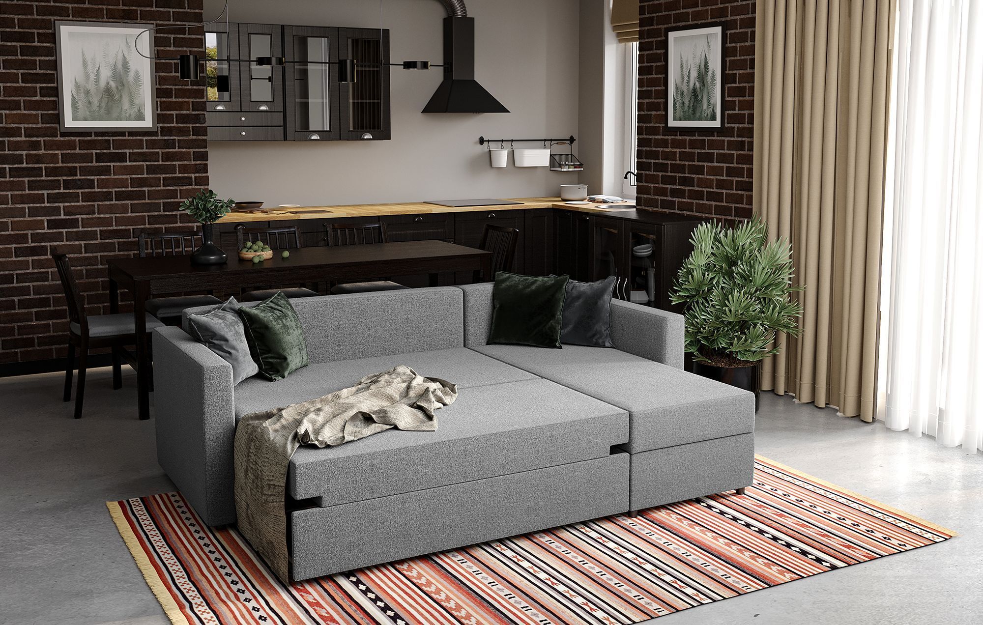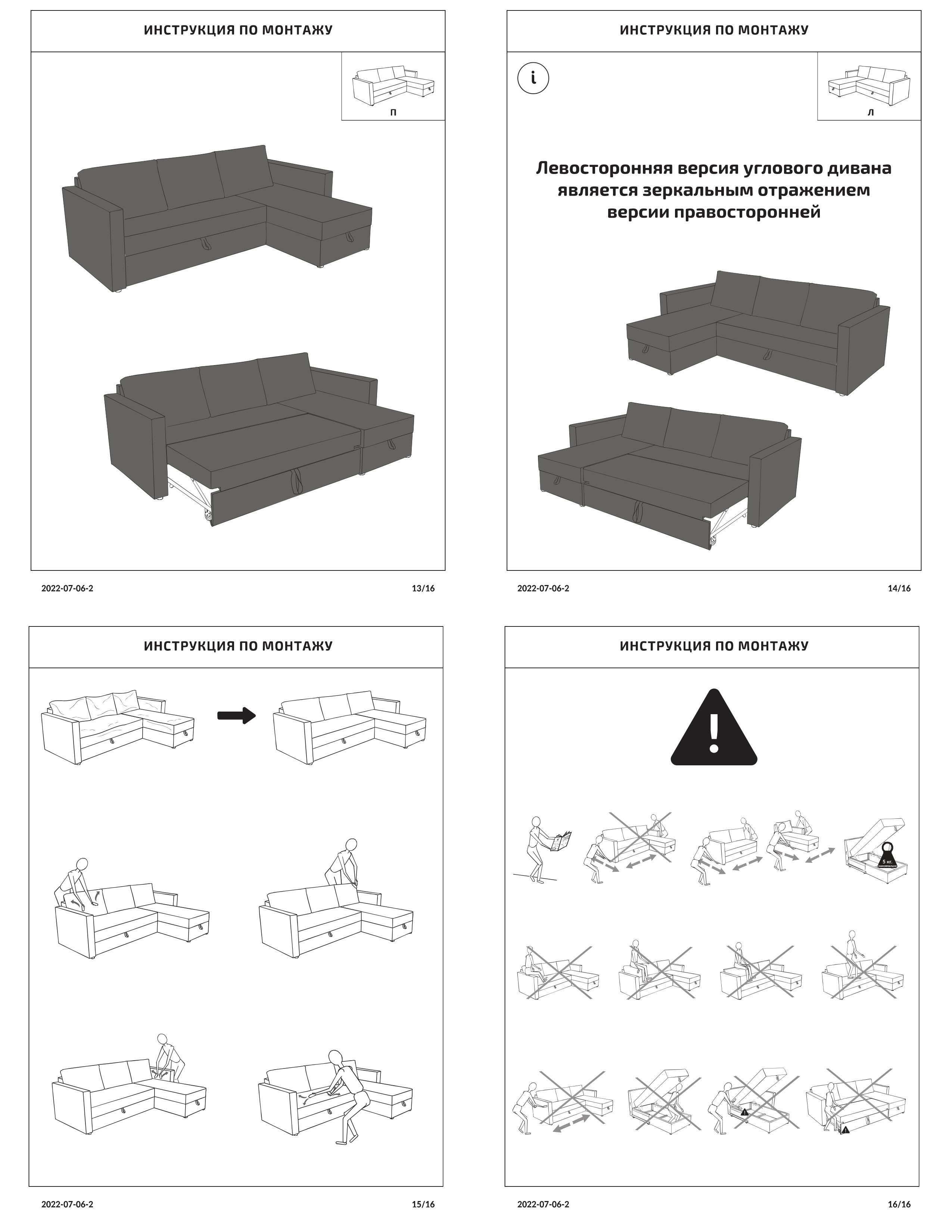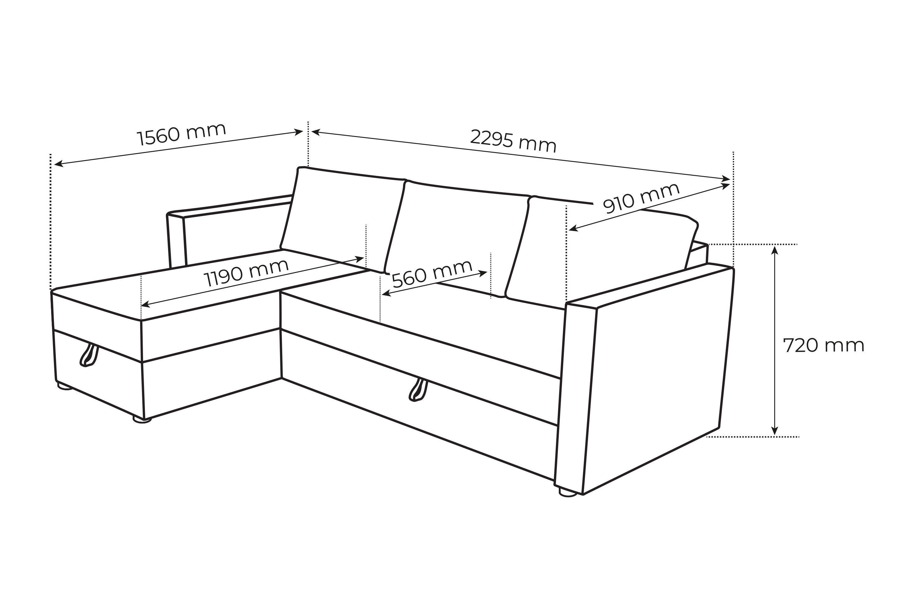 ГУД ЛАКК - новое имя бренда Шведский Стандарт. Угловые диваны с коротким подлокотником раскладного типа с ящиком для белья оптимальны для малогабаритных квартир. Занимают минимум пространства и имеют вместительное место для хранения постельных принадлежностей. Отсек для белья защищает вещи от пыли и загрязнения. МАТЕРИАЛ ОБИВКИ: РОГОЖКА• Главное преимущество ткань рогожка – это ее долговечность! Двойное шахматное переплетение делает нити прочными и устойчивыми к истиранию. • Благодаря шахматной структуре плетения нитей свободно пропускает воздух и предотвращает появление грибка и плесени. • Несмотря на свой грубый вид, рогожка мягкая и приятная на ощупь. НАПОЛНИТЕЛЬ: ППУ• Наполнитель из пенополиуретана – современный эластичный материал, способный сохранять форму, поэтому нагрузка от веса человека распределяется равномерно. • Пенополиуретан практичен и способен прослужить в течение многих лет, кроме того, такой материал безопасен и экологичен. • ППУ пропускает воздух, поэтому гигиеничен – его легко проветрить и просушить.МАТЕРИАЛ КАРКАСА: МАССИВ• Каркас из деревянного массива обеспечивает конструкции устойчивость и долговечность. • Каркасы из массива отличаются экологичностью.МЕХАНИЗМ ДЕЛЬФИН• Компактность. Диван уступает по размеру «книжкам» и «еврокнижкам» и идеально подходит для маленькой гостиной или спальни.• Прочность и долгий срок службы. Диваны такого типа подходят для ежедневного пользования.• Удобство. Спальное место получается ровным и без зазора, что обеспечивает комфортный сон.• Простота в использовании. Диван сможет разложить даже ребенок.Наша мебель выполнена в скандинавском стиле, но сможет вписаться и в разнообразные по стилю интерьеры: современный и классический стиль, лофт, минимализм. Качественная, недорогая, красивая, функциональная мебель в любой точке России, Беларуси и других стран СНГ. ГУД ЛАКК - для Вашего дома! Поставляется в разобранном виде, со всеми необходимыми комплектующими, инструкцией и схемой по сборке. Габариты изделия: Высота – 72 см; Ширина – 91/156 см; Длина – 230 см. Спальное место: 1400х2035 мм. Глубина сидения: 560/1190 мм. Максимальная нагрузка на одно спальное место: 100 кг. Максимальная нагрузка на дно ящика для белья: 5 кг. Вес без упаковки: 95 кг. Ящик для белья в угловой части 63х136х22 см. Тип опор: черные ножки из полипропилена высотой 3,5 см. Каркас мебели: заготовки из массива сосны, фанера, HDF, ЛДСП, литой картон, металлические кронштейны. Матрасный блок: пружинный блок боннель Ø 3,8мм, ППУ марок: Т30150, T20120, T25150. Размер приспинных подушек, см ШхВхГ: 67х41х25 Габариты разобранного товара с упаковкой: длина, ширина, высота, мм: 1360х700х380, 1360х790х400, 1360х685х250. Мебель рекомендуется эксплуатировать в помещении с температурой воздуха не ниже +10°С с относительной влажностью 45-70%. Нельзя располагать мебель вблизи отопительных приборов, вплотную к сырым стенам, ставить под прямые солнечные лучи, допускать соприкосновения горячих предметов с мебелью или продолжительного воздействия излучений, вызывающих нагревание поверхности мебели. Температура нагрева элементов мебели не должна превышать +40 °С. Срок службы: 5 лет. Гарантийный срок: 18 месяцев при условии эксплуатации в качестве домашней мебели.