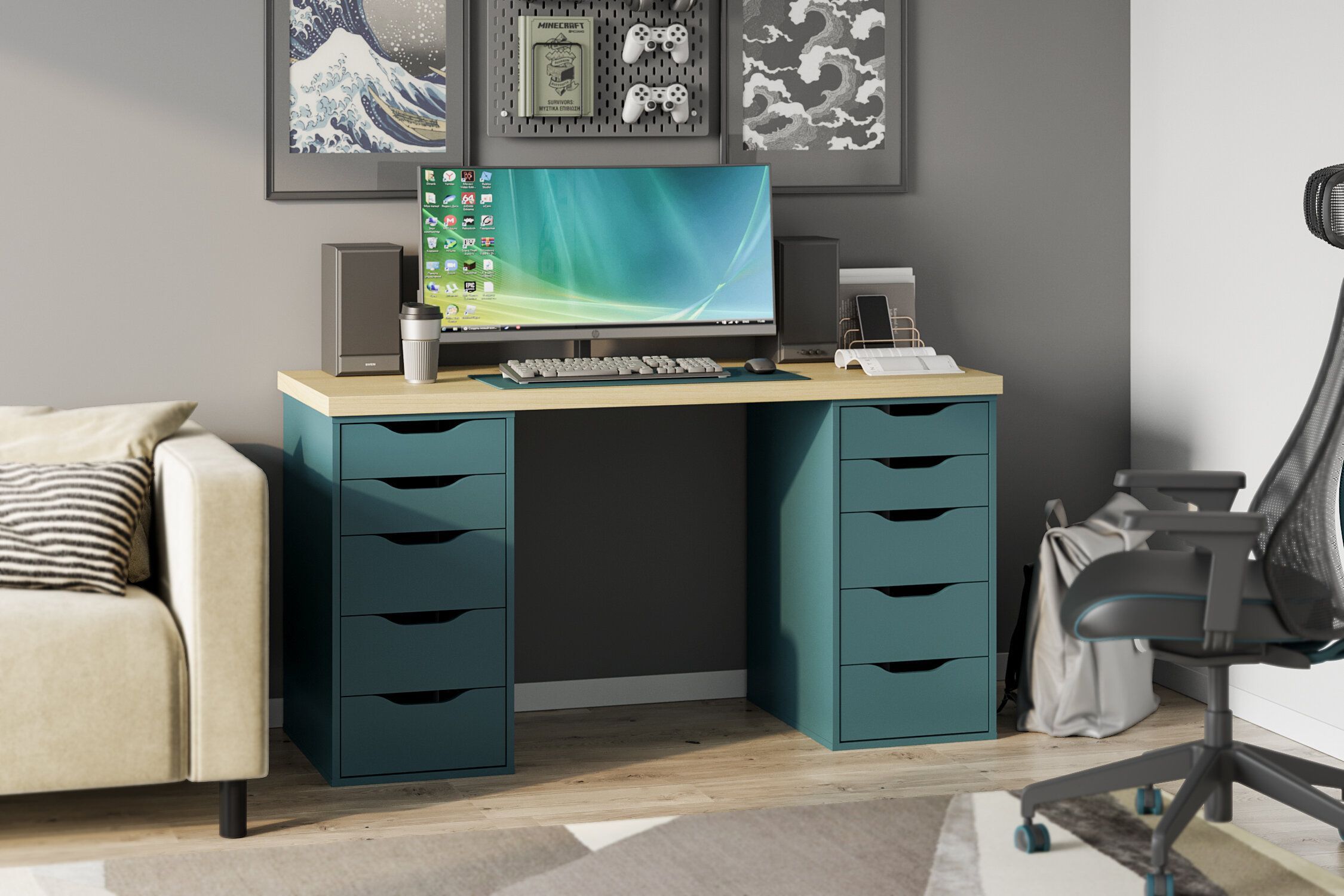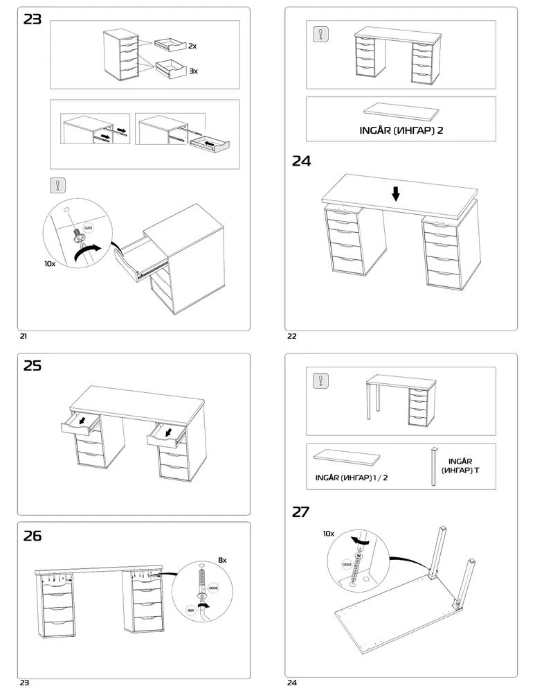 ГУД ЛАКК - знакомая мебель, которую легко купить и собрать!Ищете стильный и функциональный стол для школьника или для офиса в стиле ikea? Тогда письменный стол ИНГАР — именно то, что вам нужно! Этот практичный и красивый стол выполнен в скандинавском стиле и имеет размеры 140х75х55 см, что делает его идеальным выбором для любого интерьера. Стильный цвет и матовое покрытие стола ИНГАР гармонично впишутся в любое пространство, будь то детская комната, кабинет или домашний офис. Стол ИНГАР оснащён 10 вместительными ящиками, которые помогут организовать рабочее пространство и хранить все необходимые школьные принадлежности в порядке. Шариковые направляющие обеспечивают плавное и бесшумное открывание и закрывание ящиков. Изготовленный из качественного ДСП и тамбурата, стол ИНГАР способен выдержать общую нагрузку до 110 кг (5 кг на каждый ящик + 30 кг на тумбу), что гарантирует долгий срок службы. Ищете стол, который сочетает в себе красоту, функциональность и доступность? Тогда стол ИНГАР — ваш выбор! Добавьте его в корзину прямо сейчас и создайте комфортное рабочее место для себя или своего ребёнка!Материал и толщина фасада - ЛДСП 15ммМатериал и толщина столешницы - ДСП и HDF сотовое заполнение 37 ммМатериал и толщина ящиков - ЛДСП 12ммМаксимальная нагрузка на ящик - 5 кгТип направляющих - шариковые