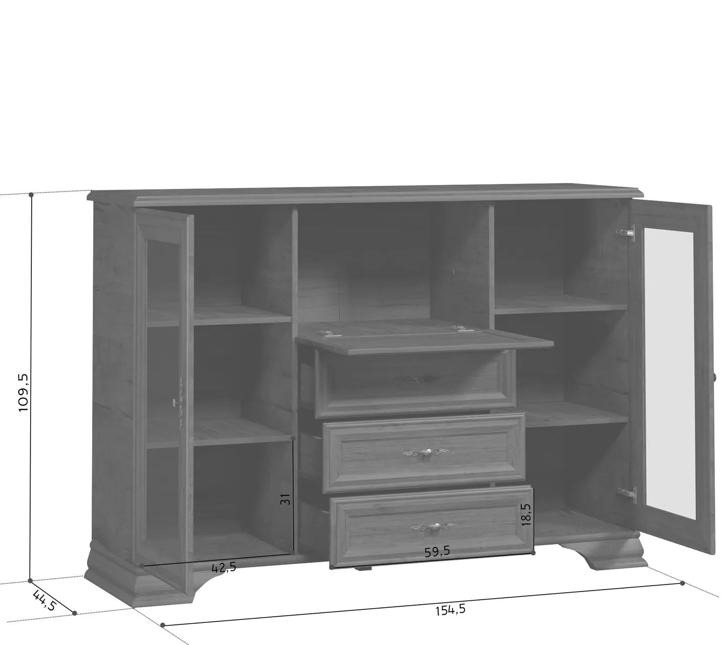 Каштановая высокая тумба на ножках производства Белоруссии имеет правильные линейные размеры. Высота конструкции составляет 109,5 см и ширина ‑ 154,5 см, что позволит установить ее в небольшой комнате. Глубина тумбочки в 44,5 см позволит разместить внутри много полезных вещей. Для увеличения срока ее службы производитель BRW использовал европейскую фурнитуру высокого качества. Изящные металлические ручки, роликовые направляющие созданы для удобства и вдохновения.
