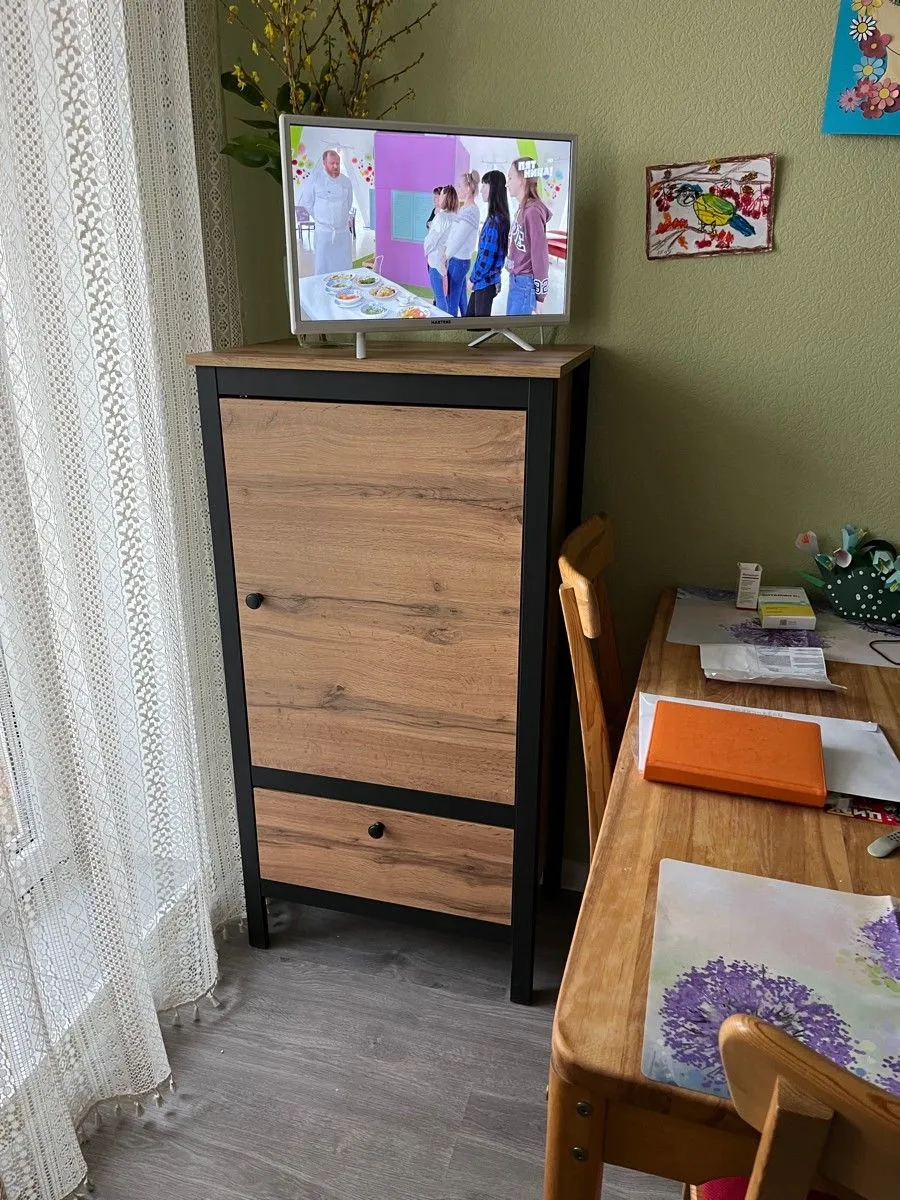Товар соответствует описанию и картинкам. К сожалению, при сборке обнаружил, что не хватает задней стенки. Но без проблем этот вопрос решили и отправили отдельным заказом. Сборка не сложная.