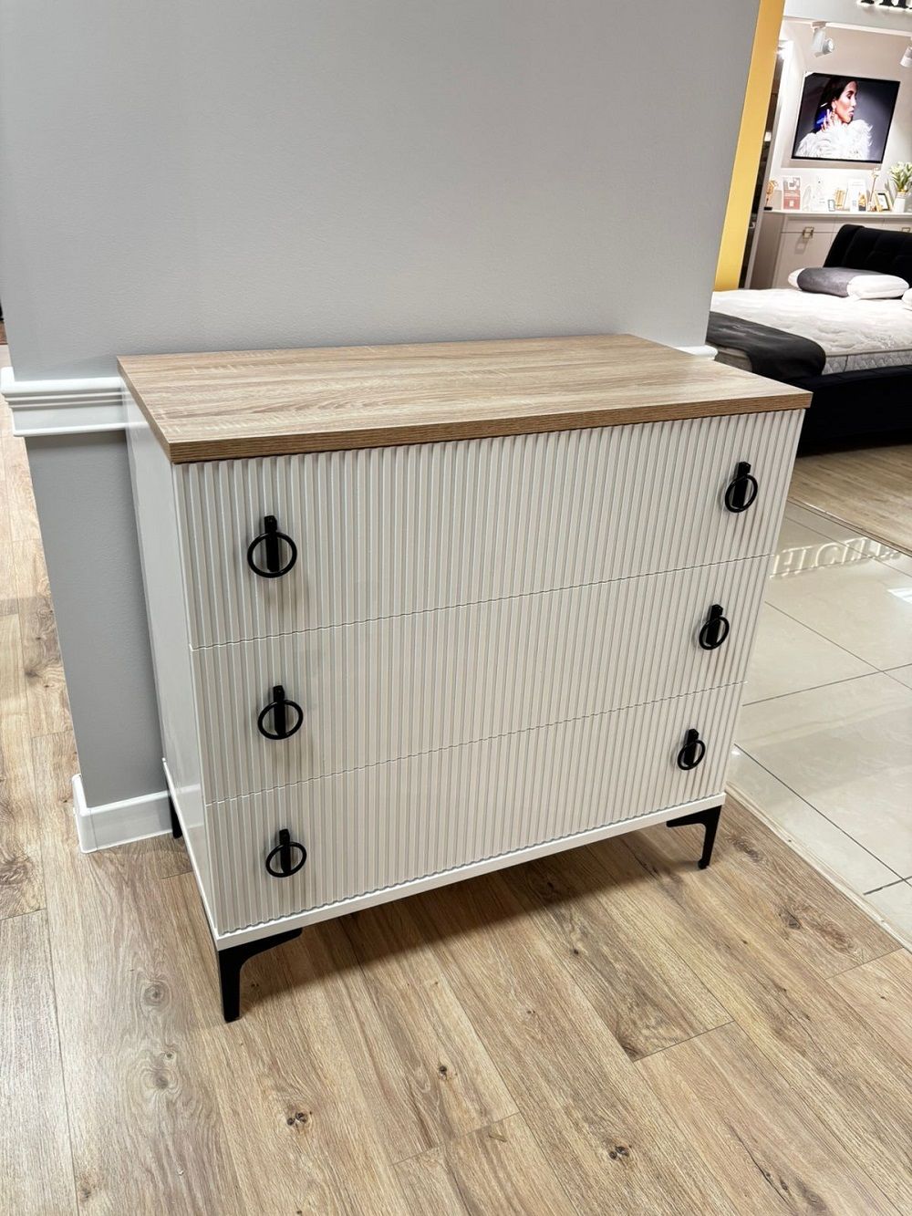 Дополняют кровать стильные и функциональные прикроватные тумбы "Стелла". Их рельефные фрезерованные фасады и элегантные ручки делают их настоящим украшением спальни. Ящики оснащены современными бесшумными механизмами с доводчиком Внутри достаточно места для хранения личных вещей.