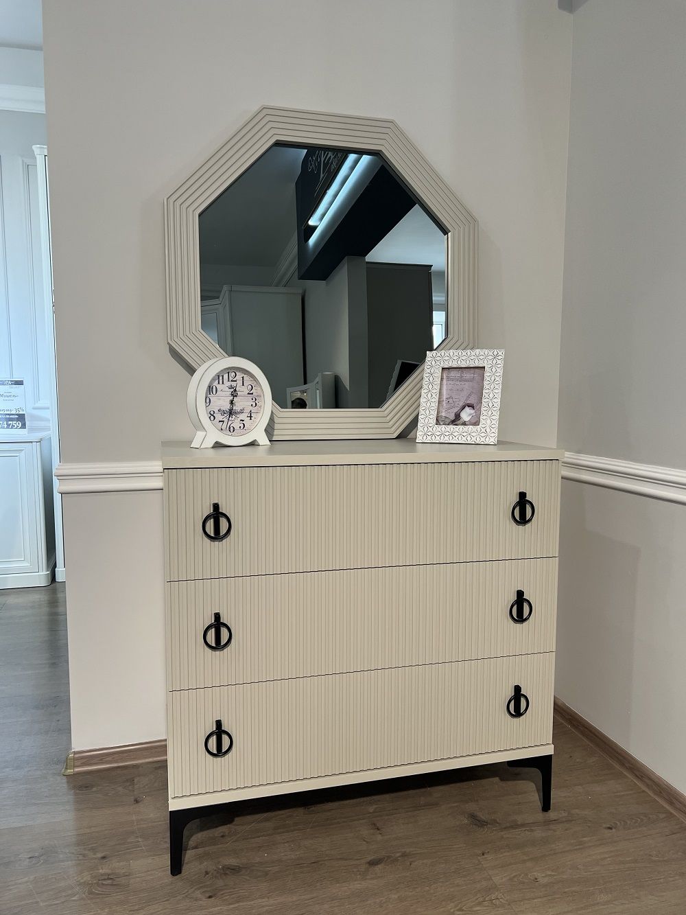 Зеркало "Стелла" с фрезерованной рамкой из МДФ становится ярким акцентом пространства.