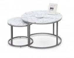 Комплект Halmar PAOLA 2 стола журнальных (белый мрамор/серебристый)