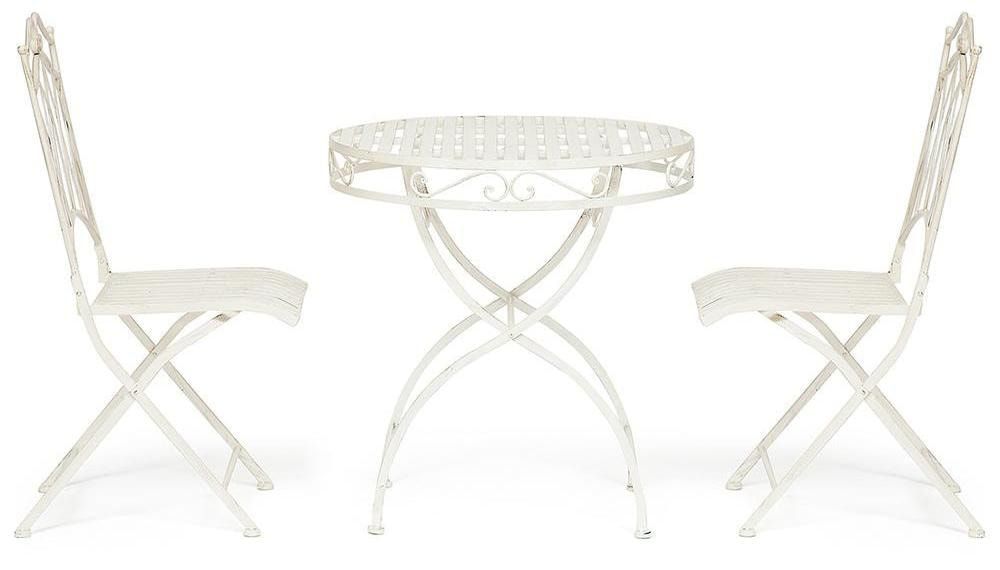 Материал: металл. Цвет: белый антик (antique white). Размеры: стол - 70х74,5 см, стул - 45х40,5х94 см Страна-производитель: Китай