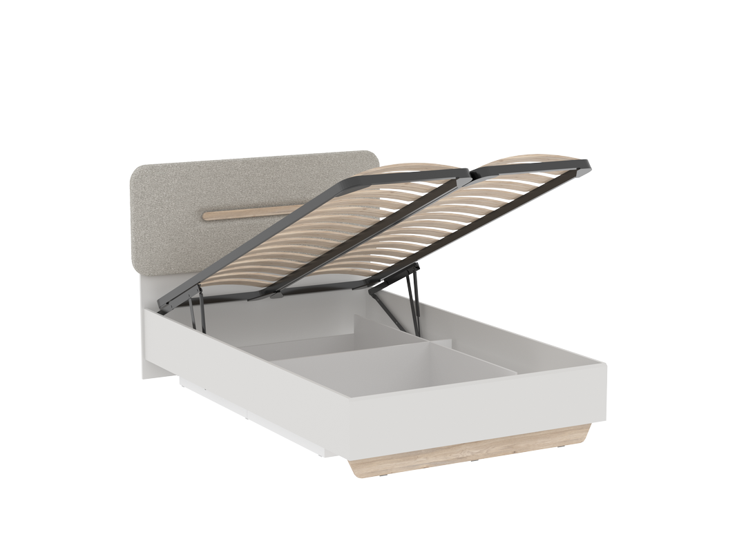 Кровать оснащена коробом для белья с подъёмным механизмом.
