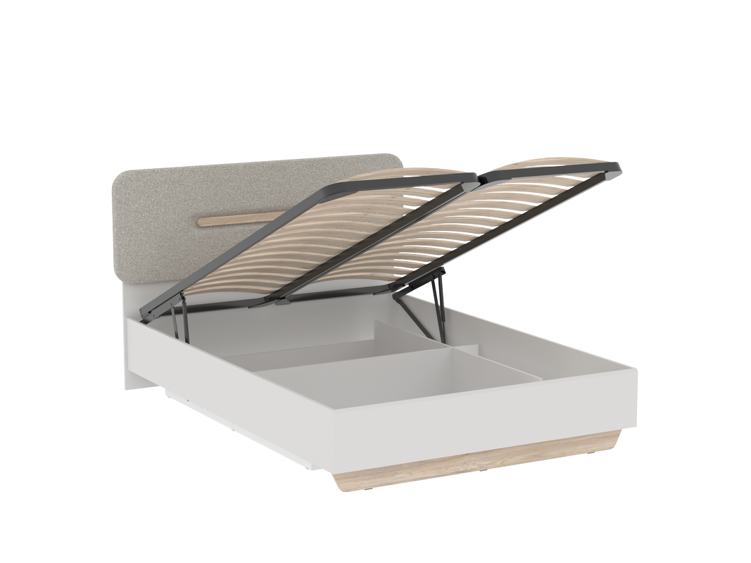 Кровать оснащена коробом для белья с подъёмным механизмом.