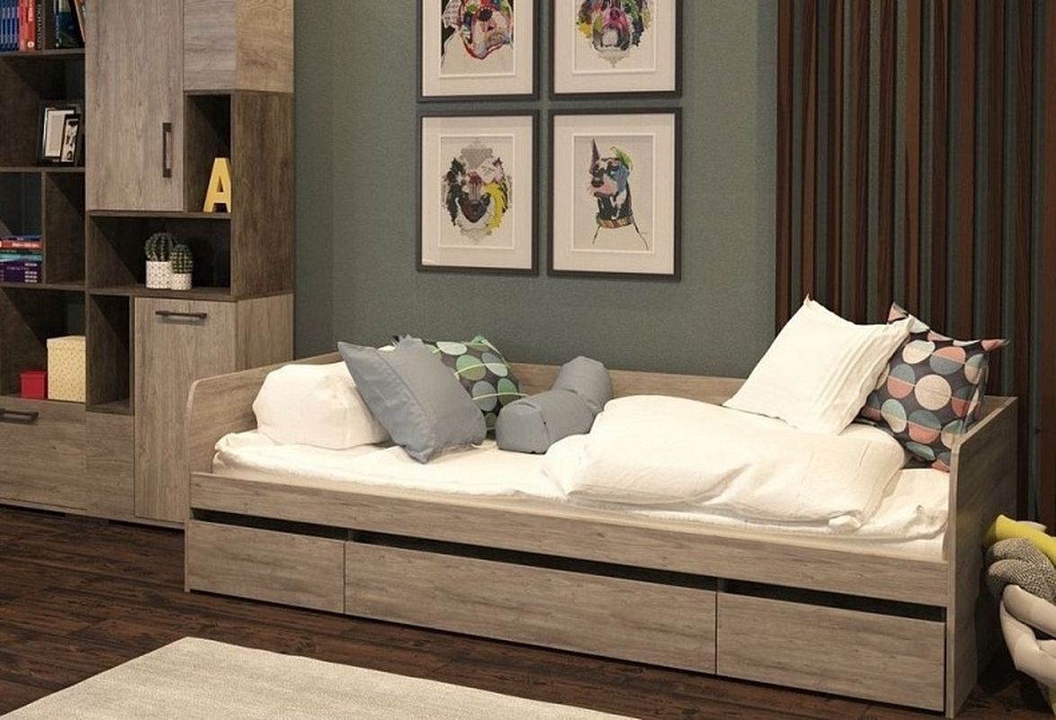 Кровать 900 с ящиками, Денвер (2042*952*600) Риббек серый, 11739