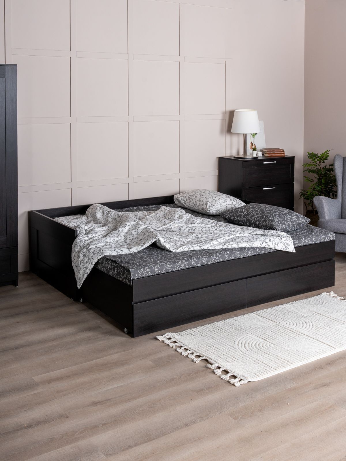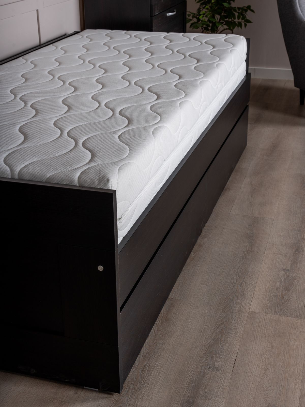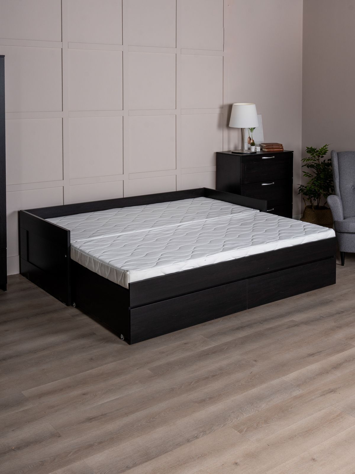 ГУД ЛАКК — знакомая мебель, которую легко купить и собрать! Кровать раздвижная ГУД ЛАКК СИРИУС, с ящиками, 80х200— три в одном: храните, спите, отдыхайте! Серия мебели СИРИУС вдохновлена популярной серией BRIMNES от IKEA, и станет идеальным дополнением вашей квартиры. Лаконичный дизайн кровати гармонично впишется в любой интерьер, а компактные размеры не займут много места. Почему выбирают раздвижную кровать ГУД ЛАКК СИРИУС, с ящиками, 80х200? Кушетка СИРИУС — это практичное и стильное решение для тех, кто ценит функциональность, комфорт и рациональное использование пространства. Она идеально подходит для различных задач: ее можно использовать как удобный диван для отдыха, постоянное спальное место шириной или дополнительную кровать для гостей. Благодаря своей универсальности, кушетка станет отличным выбором для небольших квартир, гостиных или многозадачных помещений. Одним из главных преимуществ раздвижной кровати являются встроенные ящики для хранения, расположенные под сиденьем. Они позволяют удобно хранить постельное белье, пледы, подушки или другие вещи, помогая поддерживать порядок и экономить пространство в комнате. Раздвижная кровать СИРИУС отличается компактными размерами, что делает ее идеальной для небольших помещений. Она не занимает много места, но при этом остается функциональной и комфортной. Широкое сиденье обеспечивает удобство для сидения и отдыха, а при необходимости кушетку можно дополнить уникальным раскладывающимся матрасом БЛИЗНЕЦЫ, чтобы создать еще более комфортное спальное место. Раздвижная кровать СИРИУС — это идеальное сочетание функциональности, стиля и доступности. Она станет надежным помощником в организации пространства, создании уюта и комфорта в вашем доме. С ней вы сможете максимально эффективно использовать каждый квадратный метр, не жертвуя при этом стилем и удобством!