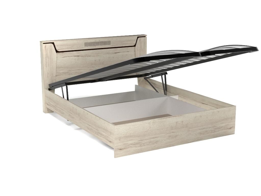 Кровать Люкс 1600 с подъемным механизмом, Мале (1660*2126*1000) Дуб галифакс белый