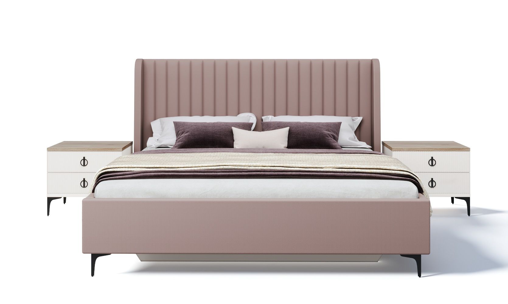 Каждая деталь спальни тщательно продумана, чтобы подарить вам не только максимальный комфорт и эстетическое удовольствие, но и уверенность в высоком качестве мебели. Корпуса и столешницы модулей выполнены из ламинированной древесной плиты европейского качества, Фасады из природного МДФ задекорированы рельефной фрезеровкой и авторский стиль фабрики ЭРА — это финишное покрытие матовая итальянская эмаль ярко серого цвета.