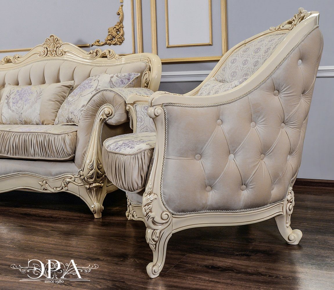 Классическое кресло «Мона Лиза» размером 90х105х90 см (ш/в/г) в цвете крем идеально впишется в интерьер гостиной, кабинета и домашней библиотеки классического стиля. Его можно использовать отдельно, как акцент, или в комплекте с диваном и другой мебелью серии «Мона Лиза».