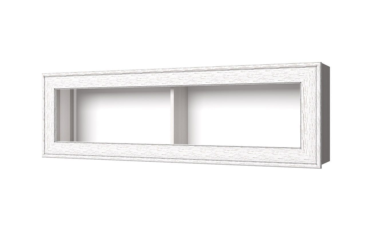 Откидная дверца навесной полки 1V Tiffany с помощью газового амортизатора легко открывается вверх, что создает обширный обзор для пользователя и позволяет без помех достать нужную вещь. Ее длина составляет 130 см, на таком пространстве можно свободно уместить книги, альбомы и предметы декора. Вертикальная перегородка в центре удержит их в стабильном положении и не даст упасть в одну из сторон.
