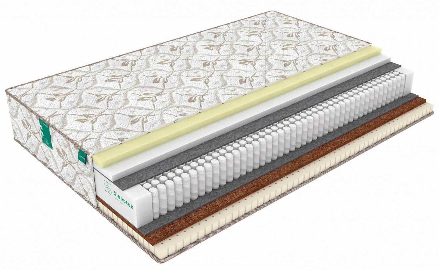 Разносторонняя модель, обладающая эффектом памяти формы. Жесткость одной стороны – мягкая, другой – умеренно-мягкая. Мягкая сторона проложена пеной «мемори» и ортопедической пеной. Эти материалы обеспечивают спальной поверхности комфортность и помогают ей подстраиваться под форму тела спящего. В качестве наполнителя с умеренно мягкой стороны использована комбинация койры кокоса и натурального латекса. Такое сочетание помогает одновременно усилить ортопедические качества блока пружин и придать спальному месту комфорт. Основой модели служит блок независимых пружин S1000 с высокой концентрацией пружин на единицу площади. Блок обеспечивает модели ортопедические свойства. Между пружинным блоком и слоями наполнителей находятся прослойки термовойлока. Это плотный изолирующий материал, который эффективно предотвращает повреждение мягких наполнителей пружинами и, таким образом, продлевает срок службы матраса. По периметру матраса предусмотрено усиление из плотной пены, что продлевает срок эксплуатации матраса. Блок пружин отделен от наполнителей слоями термовойлока,он защищает наполнители от контакта с пружинами и продлевает срок службы матраса. Общая высота модели – 23 см. Максимальная нагрузка – 130 кг. Матрас поставляется в трикотажном чехле, простеганном на объемном холлконе 200 грамм особенность холлкона в том, что его волокна расположены вертикально,это придаёт дополнительный комфорт и упругость .Такой чехол выглядит более пышно и роскошно в отличие от обычных синтепоновых аналогов.