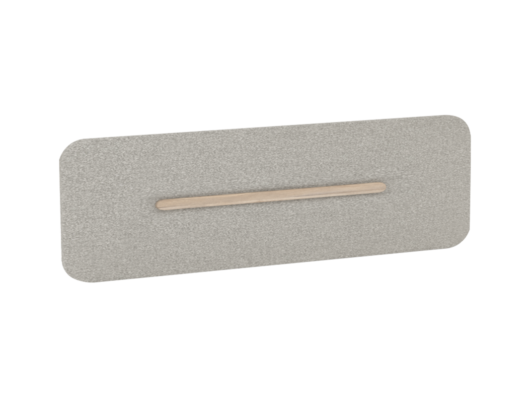 Спинка кровати мягкая со вставкой под дерево. Обивочная ткань спинки выполнена из фактурного «велюра» с эффектом новомодной буклированной ткани двух оттенков. Выгода велюра в том, что он легче поддаётся очистке специальными средствами нежели натуральная ткань «букле».