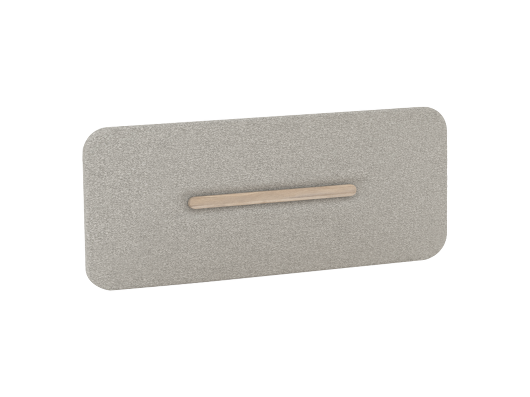 Спинка кровати мягкая со вставкой под дерево. Обивочная ткань спинки выполнена из фактурного «велюра» с эффектом новомодной буклированной ткани двух оттенков. Выгода велюра в том, что он легче поддаётся очистке специальными средствами нежели натуральная ткань «букле».