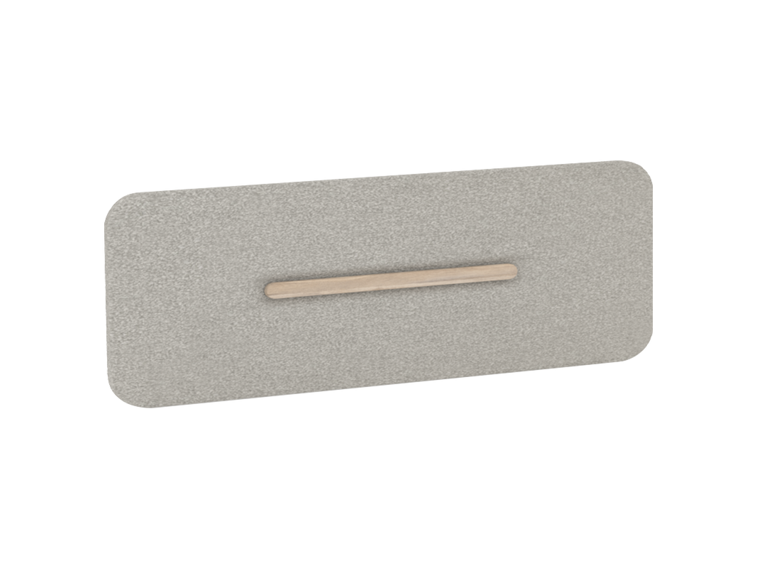 Спинка кровати мягкая со вставкой под дерево. Обивочная ткань спинки выполнена из фактурного «велюра» с эффектом новомодной буклированной ткани двух оттенков. Выгода велюра в том, что он легче поддаётся очистке специальными средствами нежели натуральная ткань «букле».