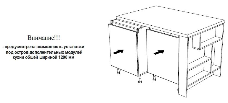 Остров 1200 с полкой и столешницей, Женева, Серый Каспий 3087