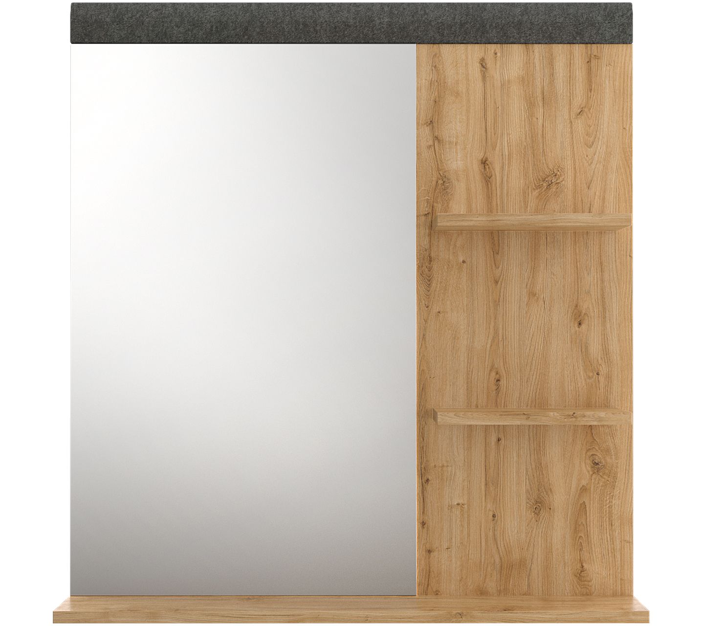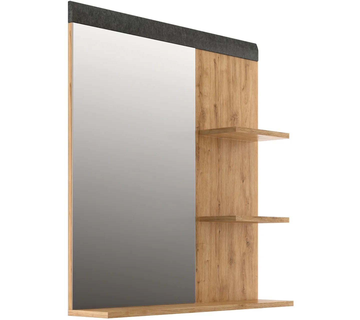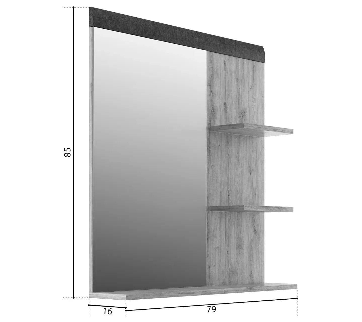 С правой стороны и в нижней части настенного зеркала Grace находятся три компактных полки, удобные для размещения расчесок, заколок и предметов постоянного пользования. Каждая из них выдерживает вес до 1 кг. Вся конструкция имеет размер 85×79 см, это довольно компактная модель с массой полезных функций.