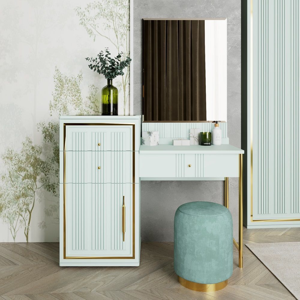 метализированный декор и фактурная фрезеровка на фасадах — авторский стиль Эра оригинальные металлические опоры в цвете латунь - облегчают пространство и добавляют возможность использовать современные гаджеты - уборка с помощью робота пылесоса