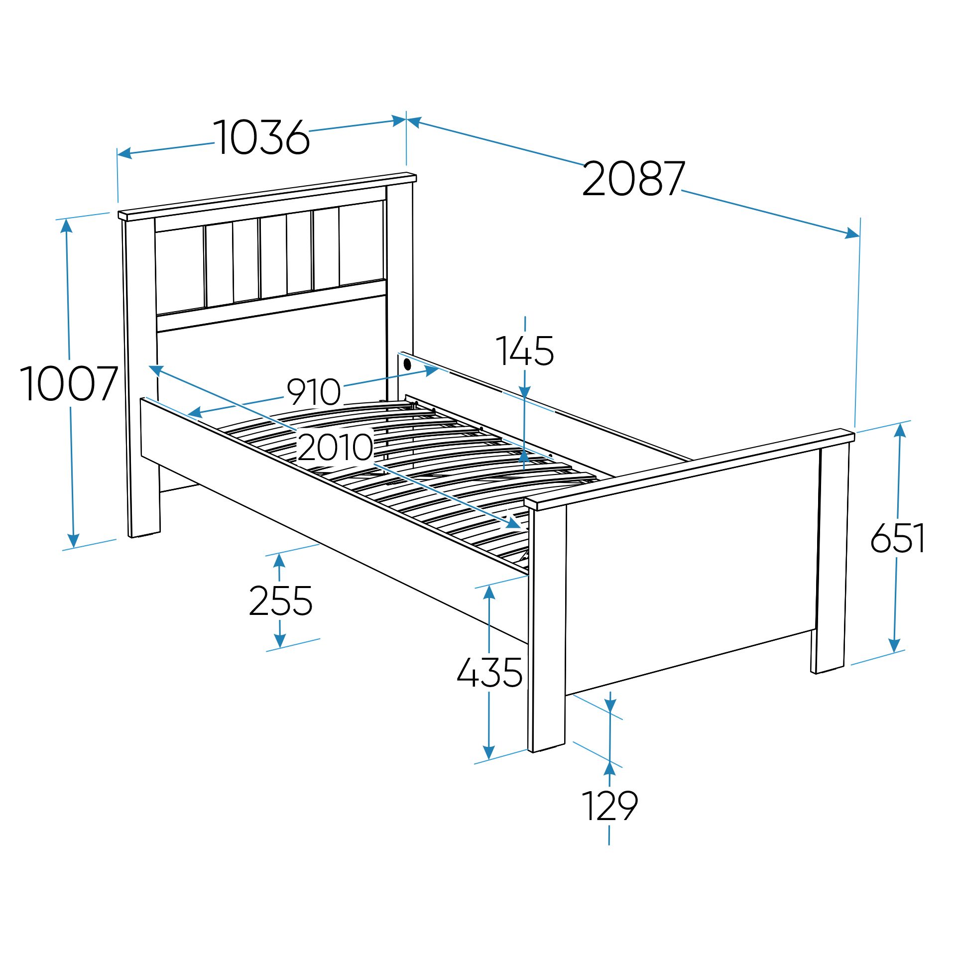 ГУД ЛАКК - знакомая мебель, которую легко купить и собрать! САГА кровать одинарная 90х200— дизайн и функциональность в каждой детали! Серия мебели САГА вдохновлена популярной серией HEMNES в традиционном стиле от IKEA, и станет идеальным дополнением вашей квартиры. Почему выбирают САГА кровать одинарная 90х200? Односпальная кровать САГА — это универсальное и практичное решение, идеально подходящее как для подростка, так и для взрослого. Благодаря своим компактным размерам, кровать легко размещается даже в небольших помещениях, что делает ее отличным выбором для малогабаритных комнат или уютных спален. Она оснащена ортопедическим реечным дном, которое обеспечивает оптимальную поддержку позвоночника во время сна и способно выдерживать нагрузку до 140 килограммов, гарантируя комфорт и долговечность. Серия САГА представлена в шести вариантах цветового исполнения, что позволяет легко подобрать модель под любой интерьер и учесть индивидуальные предпочтения. Кровать выполнена в классическом стиле, который гармонично вписывается в разнообразные дизайнерские решения. Опорные элементы изготовлены из прочного МДФ, что обеспечивает устойчивость и надежность конструкции на долгие годы. САГА — это идеальное сочетание комфорта, прочности и эстетики, которое превратит ваш сон в настоящее удовольствие. Она станет не только функциональным, но и стильным элементом вашей спальни., подчеркивающим ваш вкус и заботу о здоровье.