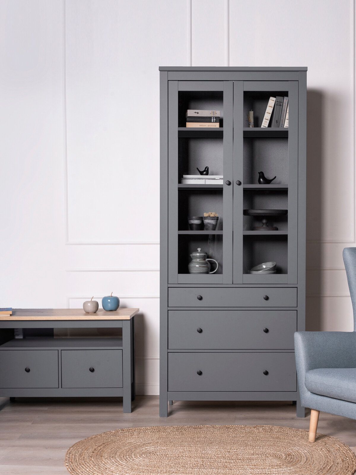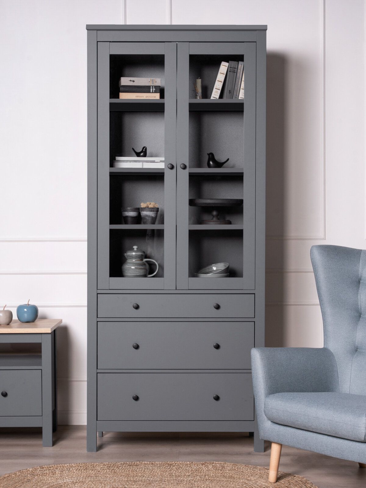 Шкаф с витриной Сага, 90х41х215 см, серый