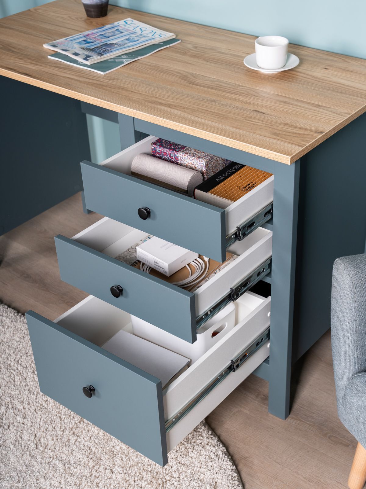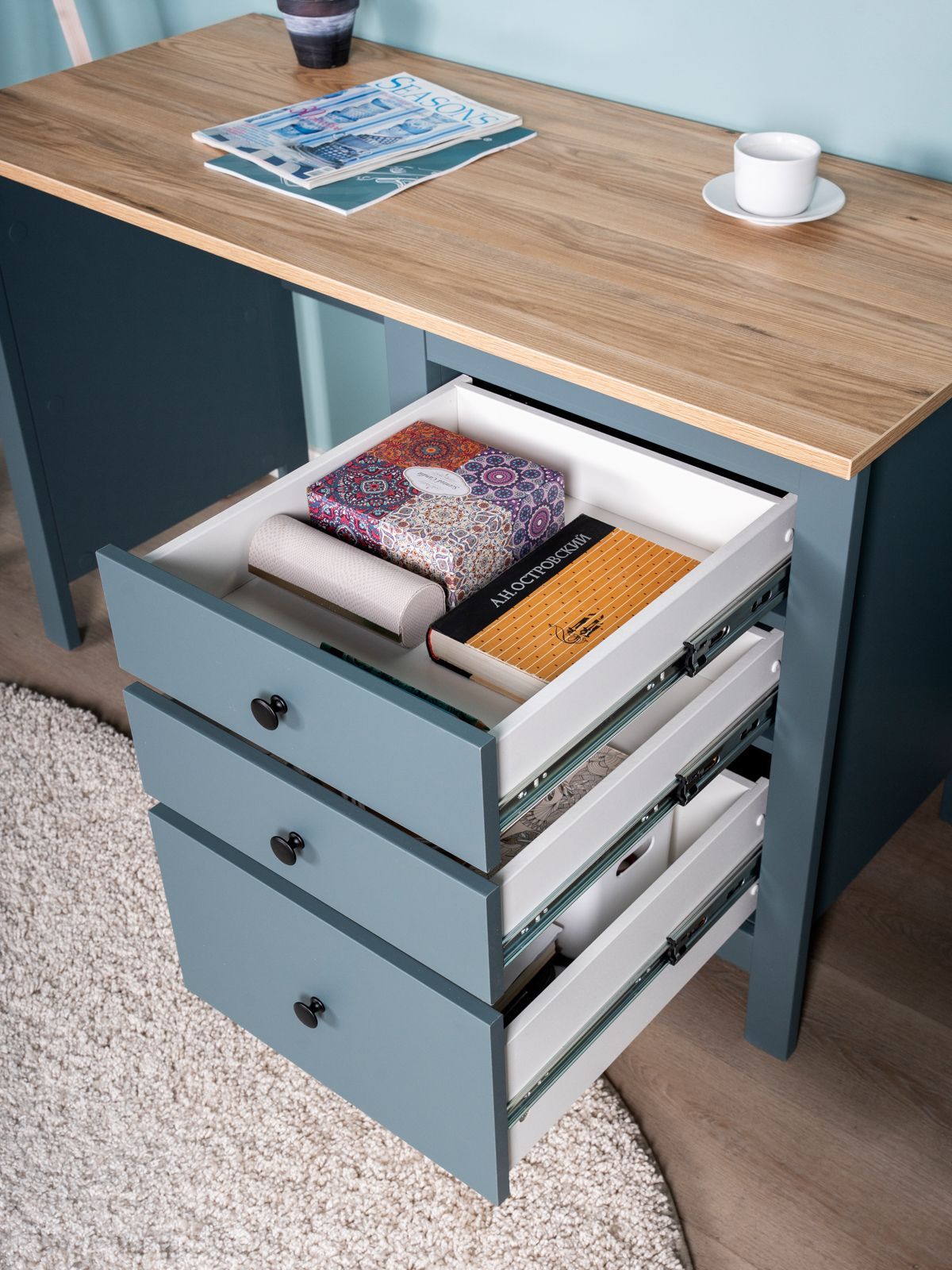 Стол письменный САГА стол письменный, 3 ящика– Идеальное соотношение цены и качества! Серия САГА вдохновлена популярной серией HEMNES от IKEA, и станет идеальным дополнением вашей квартиры. Почему выбирают стол письменный САГА стол письменный, 3 ящика? Письменный стол САГА — это изящное и функциональное решение для организации комфортного рабочего места как дома, так и в офисе. Он сочетает в себе лаконичный дизайн, надежность и продуманную конструкцию, что делает его идеальным выбором для тех, кто ценит практичность, качество и стиль без лишних деталей. Стол оснащен тремя удобными выдвижными ящиками с направляющими полного выдвижения и доводчиками, которые обеспечивают плавное и бесшумное открывание. Эти ящики предназначены для хранения канцелярии, документов, учебников и других мелочей, которые всегда должны быть под рукой. Такое решение помогает поддерживать порядок и организованность, создавая комфортные условия для работы или учебы. Несущие элементы стола выполнены из МДФ, что гарантирует его долговечность и устойчивость даже при интенсивном использовании. Пространство под столешницей позволяет удобно расположить ноги, а сама столешница предоставляет достаточно места для работы с документами, ноутбуком или другими необходимыми предметами. Благодаря своей универсальности и нейтральному дизайну, стол САГА легко впишется в любое пространство — будь то домашний кабинет, детская комната или офис Письменный стол САГА — это не просто мебель, а продуманное рабочее пространство, которое помогает сосредоточиться, вдохновляет на продуктивность и поддерживает порядок. Это идеальный выбор для тех, кто стремится к гармонии между стилем, комфортом и практичностью.