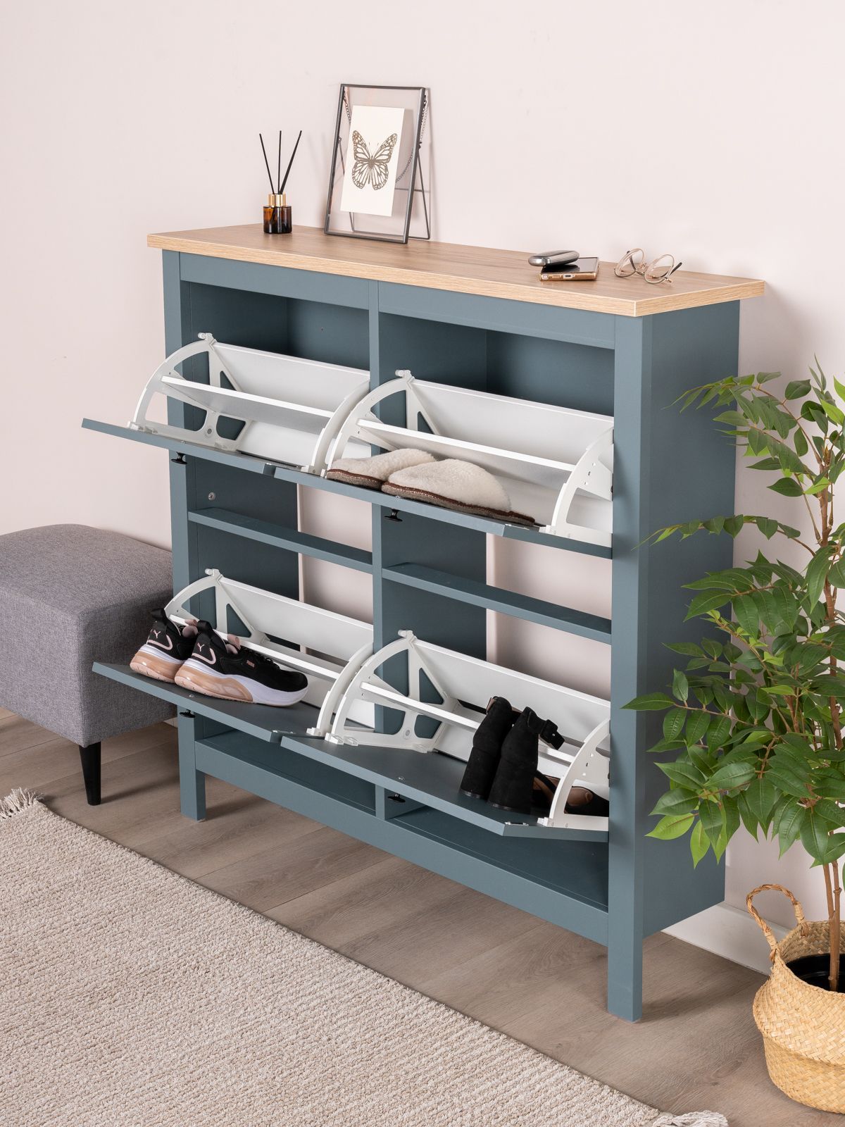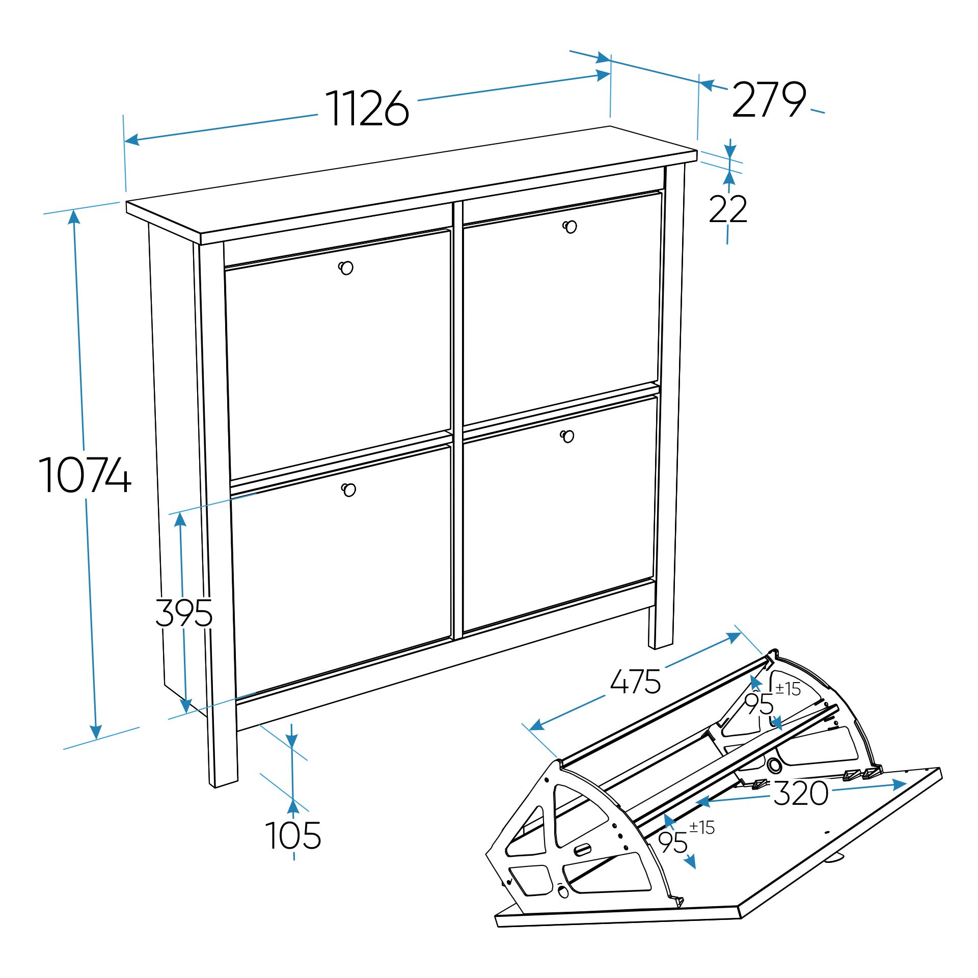 САГА тумба для обуви 113х108 — элегантность и качество в каждой детали! Серия САГА вдохновлена популярной серией HEMNES от IKEA, и станет идеальным дополнением вашей квартиры. Почему выбирают САГА тумба для обуви 113х108? Тумба для обуви САГА — это стильное и функциональное решение для хранения, которое идеально впишется в любой интерьер, будь то прихожая, гардеробная или даже балкон. Ее продуманный дизайн и удобные особенности делают ее незаменимым помощником в организации порядка. Главная особенность тумбы — четыре откидывающихся полки, на которых можно с комфортом разместить до двенадцати пар обуви. Это позволяет легко доставать и убирать обувь, сохраняя ее в идеальном состоянии. Тумба оснащена надежным магнитными фиксаторами, которые обеспечивают безопасность и предотвращает случайное падение полки. Вы можете быть уверены, что обувь останется на своем месте. Не верхнюю полку можно поставить декор или кинуть связку ключей, что очень удобно в прихожей. Несколько тумб можно разместить в ряд, создавая стильное и практичное горизонтальное решение для хранения обуви. Это отличный вариант для больших семей или любителей обуви. Тумба отличается компактными размерами, что делает ее идеальной для небольших пространств. При этом она легко вписывается в различные стили интерьера — от современного до классического. Тумба для обуви САГА — это не просто место для хранения, а стильный и функциональный элемент вашего интерьера. Она поможет поддерживать порядок, сэкономит пространство и станет удобным решением для хранения вашей обуви. Дополните свою прихожую или гардеробную этой тумбой и наслаждайтесь идеальной организацией!