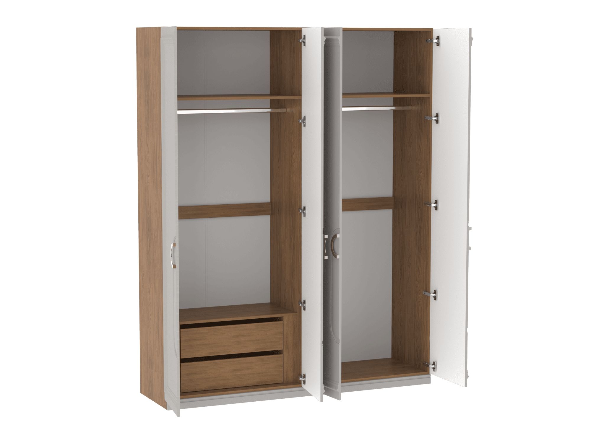 Шкаф 4-дверный с доп. ящиками, Палермо (1800*537*2284) Дуб Каселла коричневый/Экокожа Мокко