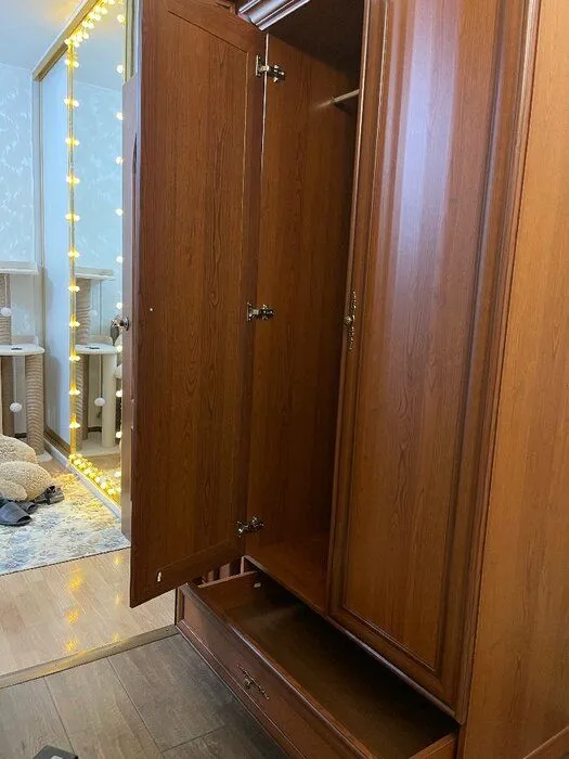Шкаф красивый, достойный. Удобный и вместительный. Внизу ящик. Комфортно открывается, закрывается. Упакован очень надежно.