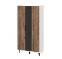 Шкаф трёх дверный, с двумя распашными дверьми на системе push-to-open, и одной дверью витриной в алюминиевом профиле 20х20мм в цвете: чёрный брашированный, стекло с тёмной тонировкой полки стеклянные с тёмной тонировкой толщиной 6мм петли плавного закрывания