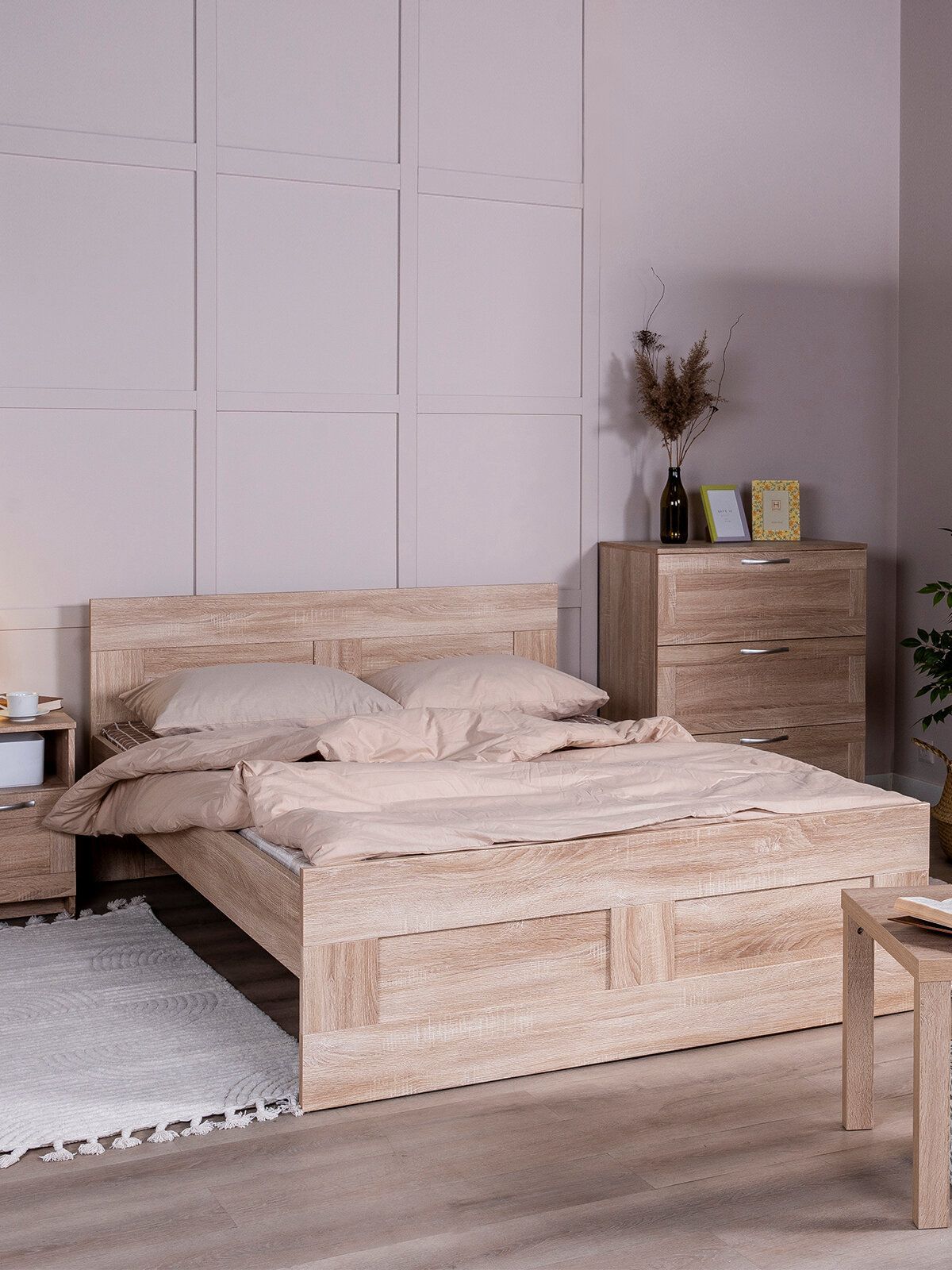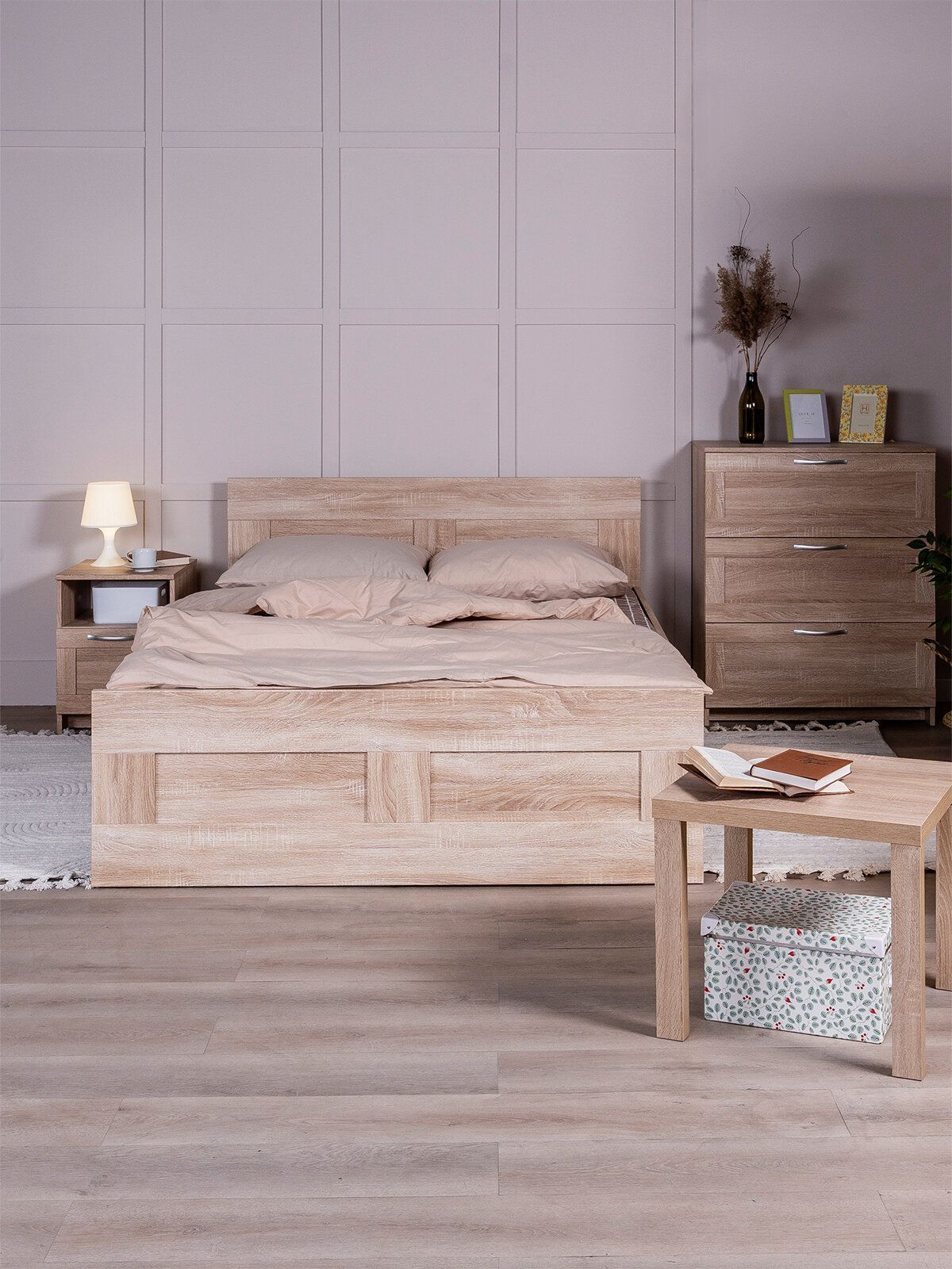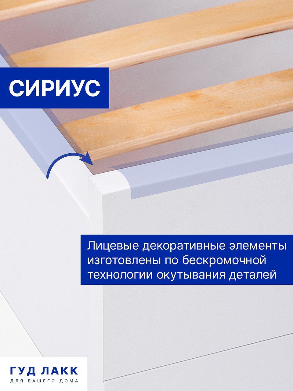 ГУД ЛАКК — знакомая мебель, которую легко купить и собрать! Кровать двуспальная ГУД ЛАКК СИРИУС, 140х200 см — элегантность и качество в каждой детали! Серия мебели СИРИУС вдохновлена популярной серией BRIMNES от IKEA, и станет идеальным дополнением вашей квартиры. Лаконичный дизайн гармонично впишется в любой интерьер, а компактные размеры не займут много места. Почему выбирают двуспальную кровать ГУД ЛАКК СИРИУС, 140х200 см? Кровать СИРИУС — это функциональное и стильное решение, которое идеально подходит для небольших помещений и тех, кто ценит практичность. Вот ее основные преимущества: Кровать СИРИУС имеет оптимальные размеры, и при этом является полноценным двуспальным решением для сна. Ее компактный дизайн позволяет максимально эффективно использовать каждый квадратный метр, не жертвуя при этом комфортом. Как и большинство продуктов ГУД ЛАКК, кровать СИРИУС предлагает отличное соотношение цены и качества. Это доступное решение для тех, кто ищет функциональную и стильную мебель, не переплачивая за ненужные излишества. Кровать оснащена прочными планками из нержавеющей стали, на которых покоится ортопедическое реечное дно. Это обеспечивает надежную поддержку и комфорт во время сна. Вам нужно лишь дополнить кровать матрасом на ваш выбор — и удобное спальное место готово! Кровать так же можно дополнить вместительными подкроватными ящиками ОРИОН, что обеспечить место для хранения пледов, подушек, одеял и многого другого, а также прикроватными тумбами СИРИУС, чтобы все нужное всегда было под рукой. Кровать СИРИУС подходит как для детей, так и для взрослых. Ее можно использовать в спальне, гостевой комнате или даже в небольшой квартире-студии. Ее универсальный дизайн и нейтральная цветовая гамма позволяют ей гармонично вписаться в любой интерьер — от скандинавского до современного минимализма. Кровать СИРИУС — это идеальное сочетание функциональности, стиля и доступности. Она станет надежным помощником в организации пространства и создании уютной атмосферы в вашем доме. С ней вы сможете наслаждаться комфортным сном и рационально использовать каждый сантиметр площади!! УЗНАВАЕМЫЙ ДИЗАЙН В СТИЛЕ СКАНДИНАВСКОГО МИНИМАЛИЗМА. Кровать с филенчатым фасадом — это элегантное решение, которое добавляет изысканности, и может использоваться в любых интерьерах. ЭКОЛОГИЧНОСТЬ. Наша мебель производится на заводе полного цикла по принципу «от древесины до готового изделия». При этом применяются максимально жесткие требования к экологичности на уровне, установленном для детской мебели. КАЧЕСТВО НА УРОВНЕ IKEA. Кровать СИРИУС изготовлена на сертифицированной фабрике в Беларуси, которая ранее производила мебель для шведского бренда. Кстати, в том числе поэтому наш ассортимент прекрасно сочетается с мебелью ИКЕА, которая, возможно, есть у Вас дома. Сочетается как по дизайну, так и за счет совпадения цветовой гаммы. ЛЕГКОСТЬ СБОРКИ. Вы можете сами легко и быстро собрать нашу мебель, что позволит сэкономить и время на ожидание сборщика, и деньги на оплату его услуг. А поможет в этом не только высокое качество изготовленной мебели, но и понятная пошаговая инструкция. Кстати, если вы вдруг потеряли инструкцию, ее всегда можно скачать здесь, в карточке товара. НАДЕЖНОСТЬ. Несмотря на то, что гарантийный срок на мебель по закону составляет 24 ме