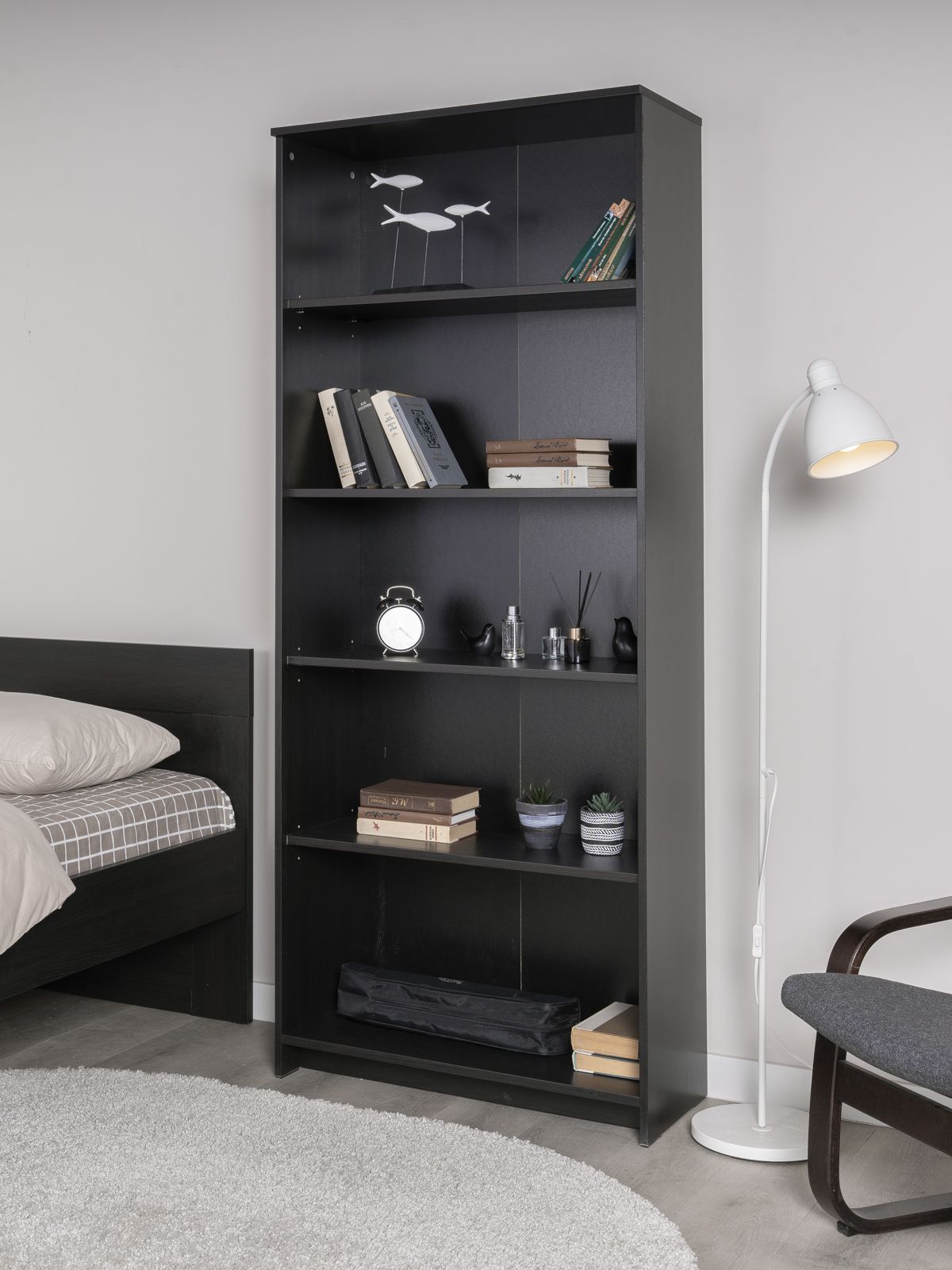 Стеллаж Сириус, 5 полок, 78х35х190 см, черный, дуб венге