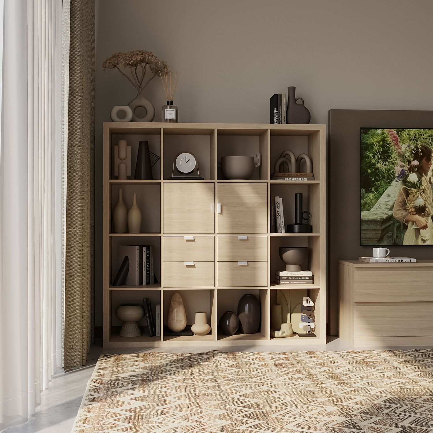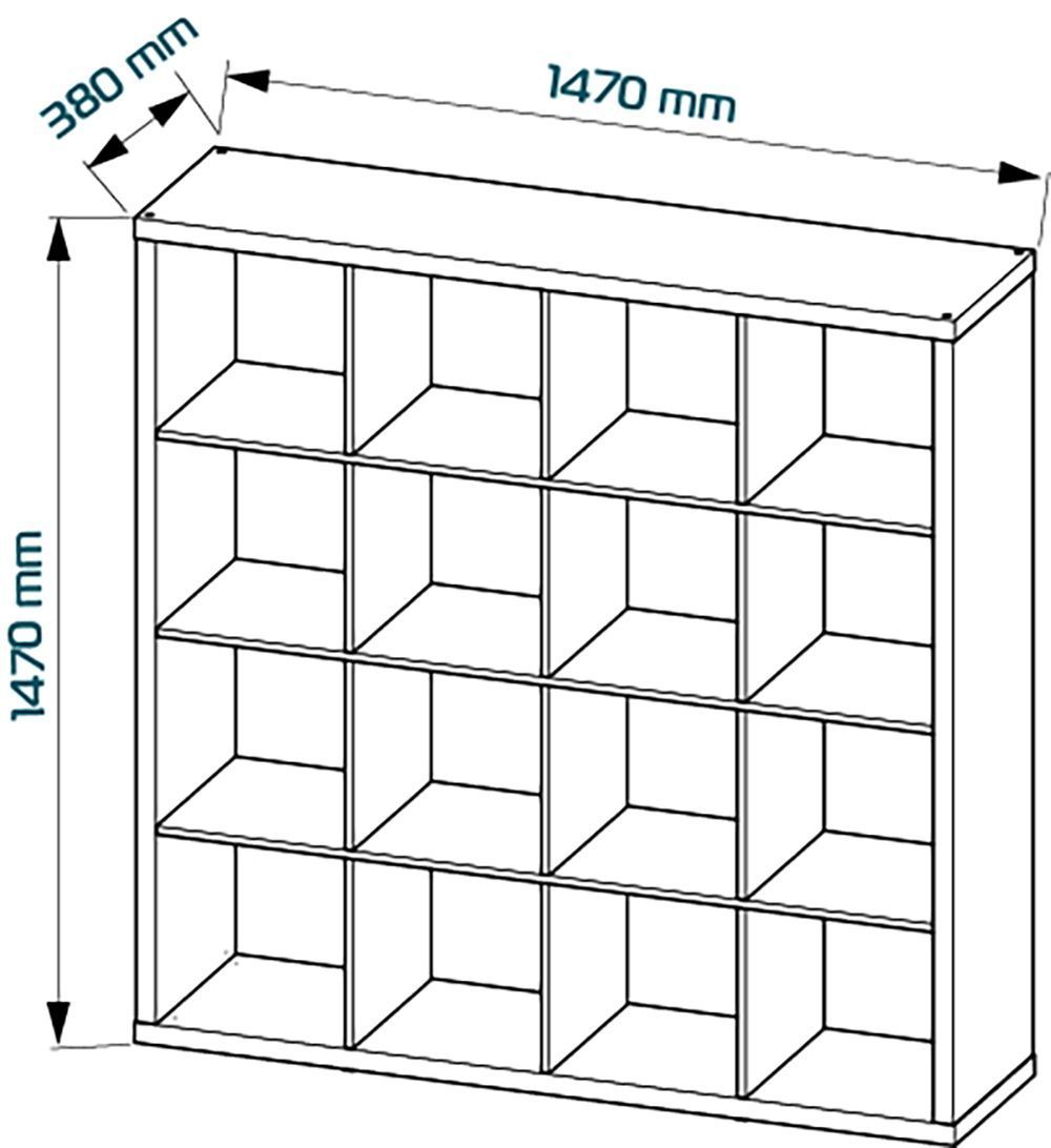 Стеллаж Фора, 16 полок, 147x147х38 см, дуб беленый