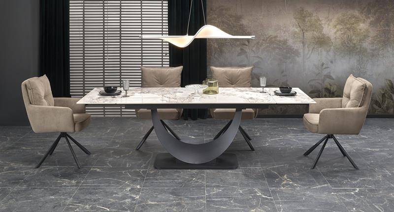 Стол обеденный Halmar FERNANDO 160 раскладной (белый мрамор/черный)