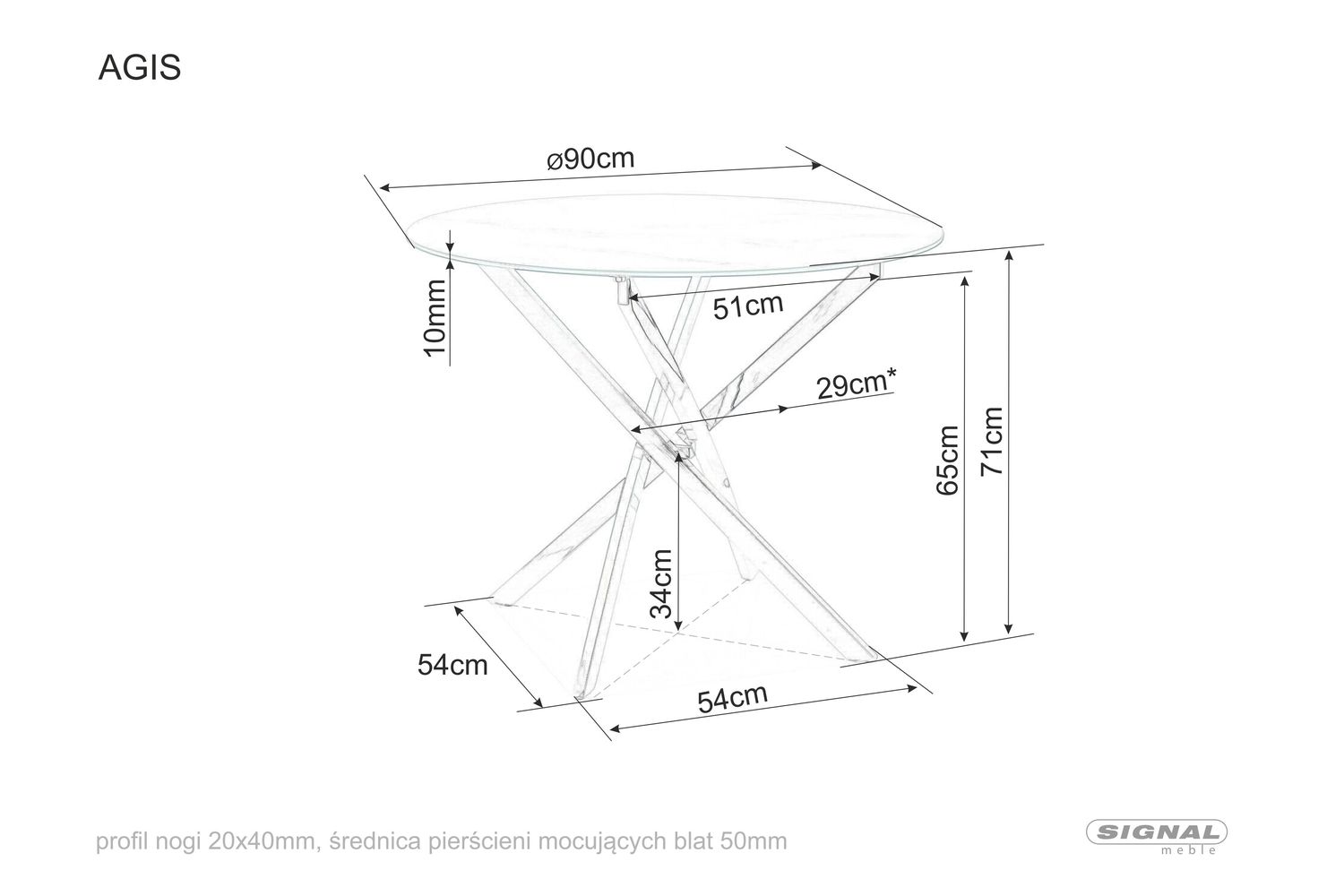 Стол обеденный Signal AGIS 90 (прозрачный/черный мат)