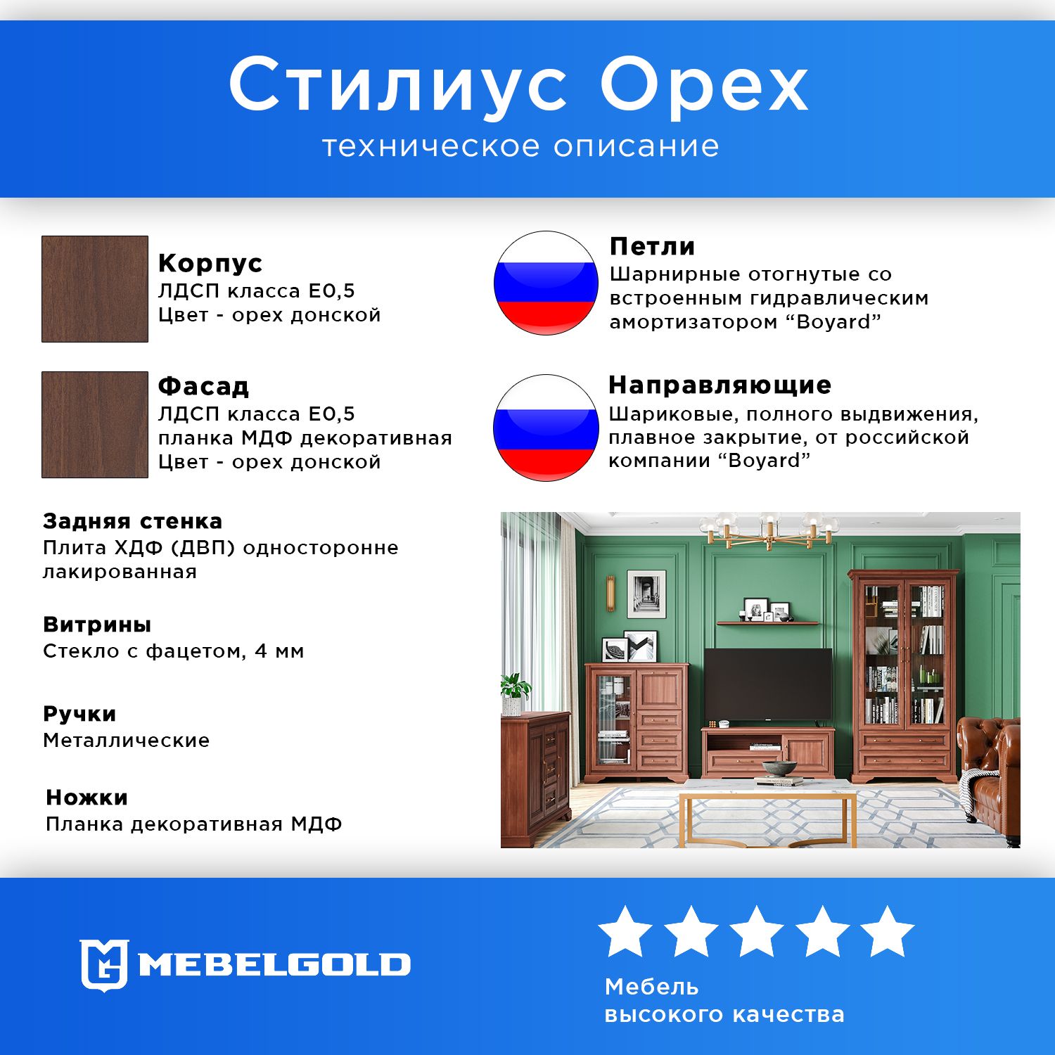 Цвет орех донской сочетается с классическим и неоклассическим стилем, выглядит дорого и солидно. Он никогда не потеряет популярности. Обеденный стол Stylius – приоритетное решение для кухни, гостиной и спальни.