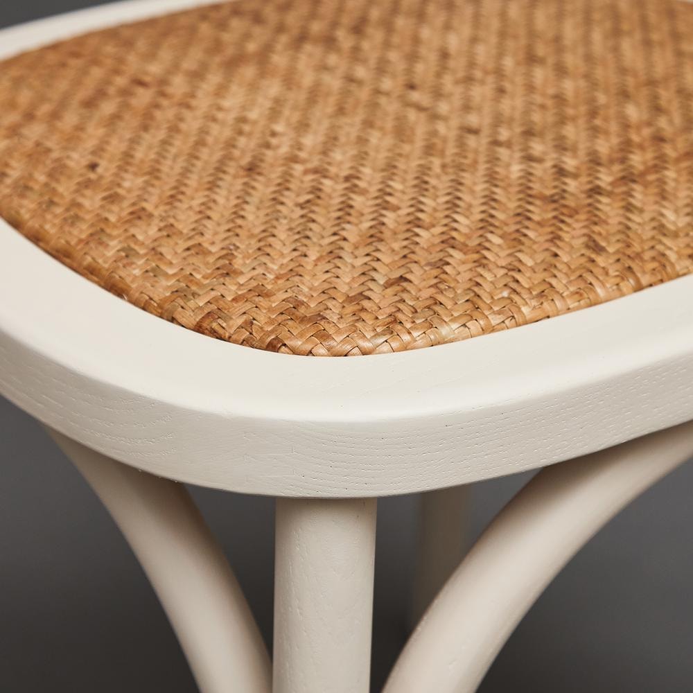 Легкий и элегантный дизайн, простые линии и естественные цвета классического венского стула Secret De Maison CROSS, выполненного в стиле гениального творения Михаэля Тонета, украсят собой любую домашнюю обстановку. Сочетание плетеного сиденья из натурального ротанга и каркаса из массива березы, покрашенного в белый цвет, придает стулу особенную красоту и оригинальность. Эргономичная спинка и удобное сиденье позволят комфортно сидеть в течение длительного времени. Конструкция изделия разработана с учетом равномерного распределения нагрузки. Натуральный ротанг и массив березы – прочные и долговечные материалы, не требующие специального ухода, способные выдерживать большую нагрузку. Стул будет радовать вас своим первоначальным видом долгие годы. Модель идеально сочетается с мебелью из коллекции THONET, поставляется в собранном виде.