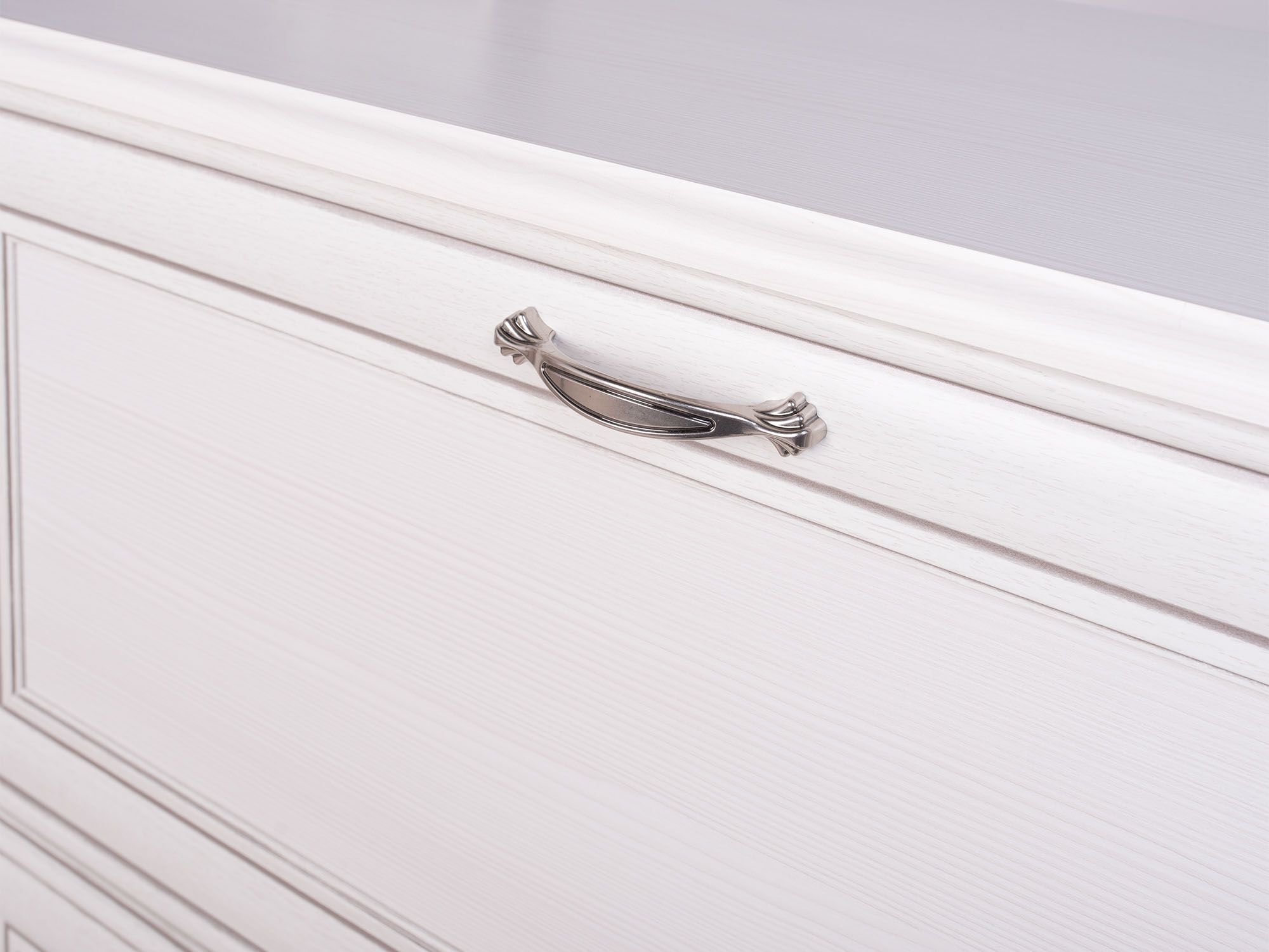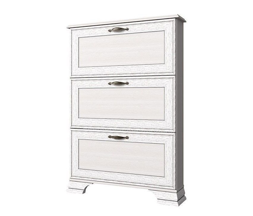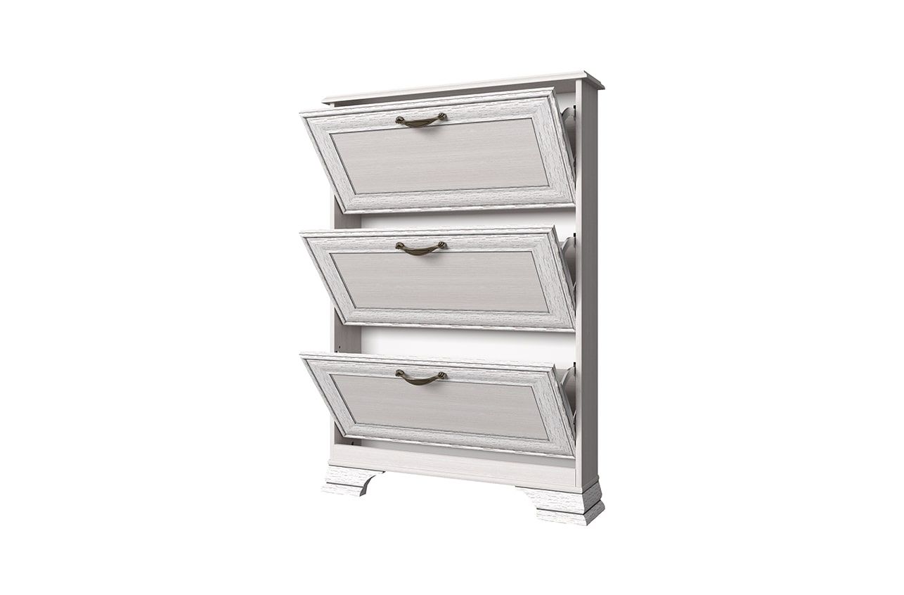 Тумба для обуви 3D Tiffany – оптимальное решение для прихожей классического стиля и интерьеров прованса. От этих направлений ей достались изогнутые рифленые ножки, филенчатые фасады и текстурная поверхность древесины. Дверцы такой тумбочки декорированы фигурными ручками-скобами с легким эффектом потертостей.