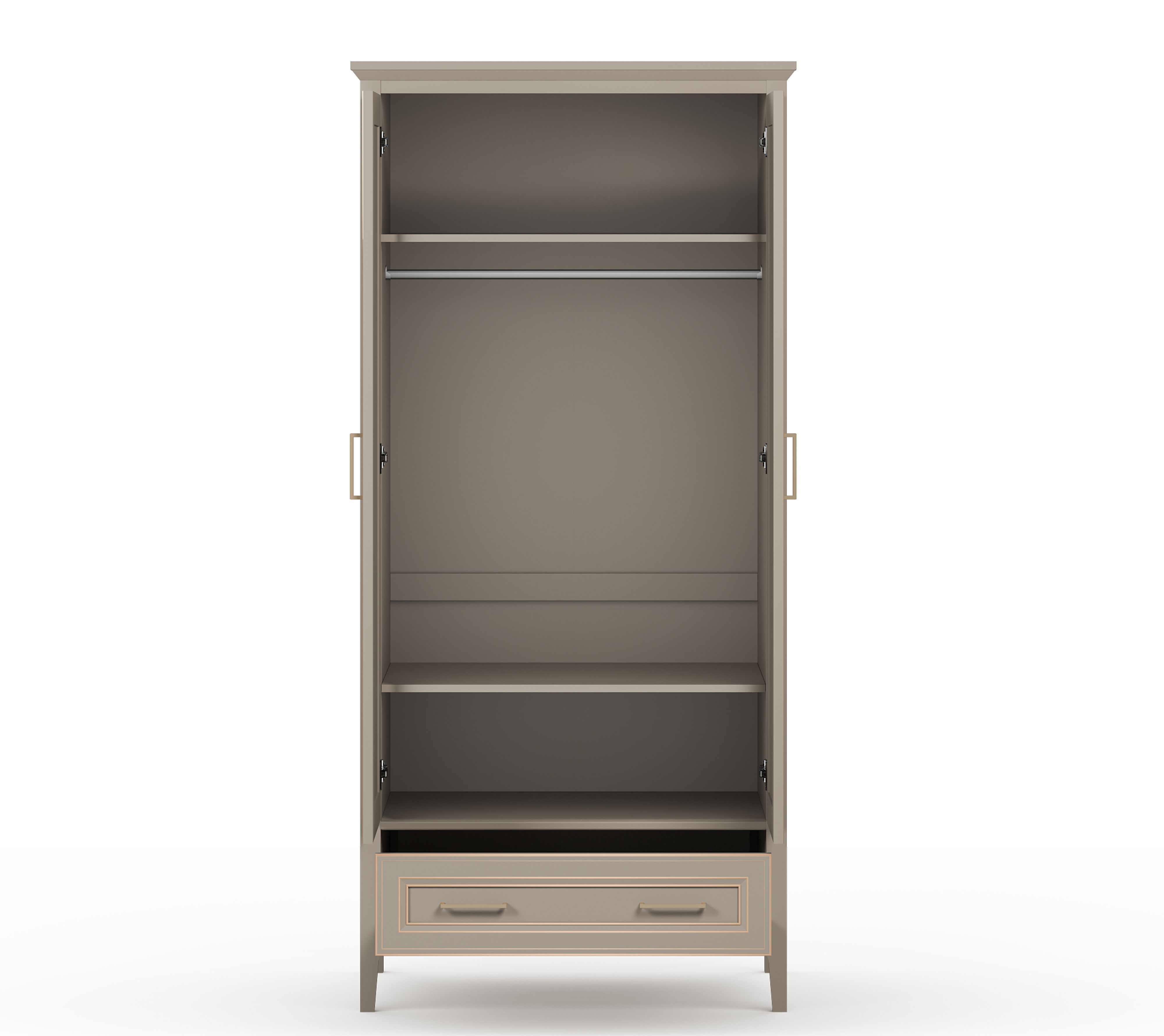 Платяной шкаф глиняно-серого цвета Classic привлекает универсальным дизайном и разнообразием систем хранения. Эта эргономичная модель состоит из двух распашных дверей и выдвижного ящика на шариковых направляющих плавного выдвижения. Небольшие размеры (ширина 95 см и глубина 62 см) позволят установить ее в малогабаритной комнате в составе гарнитура или отдельно.