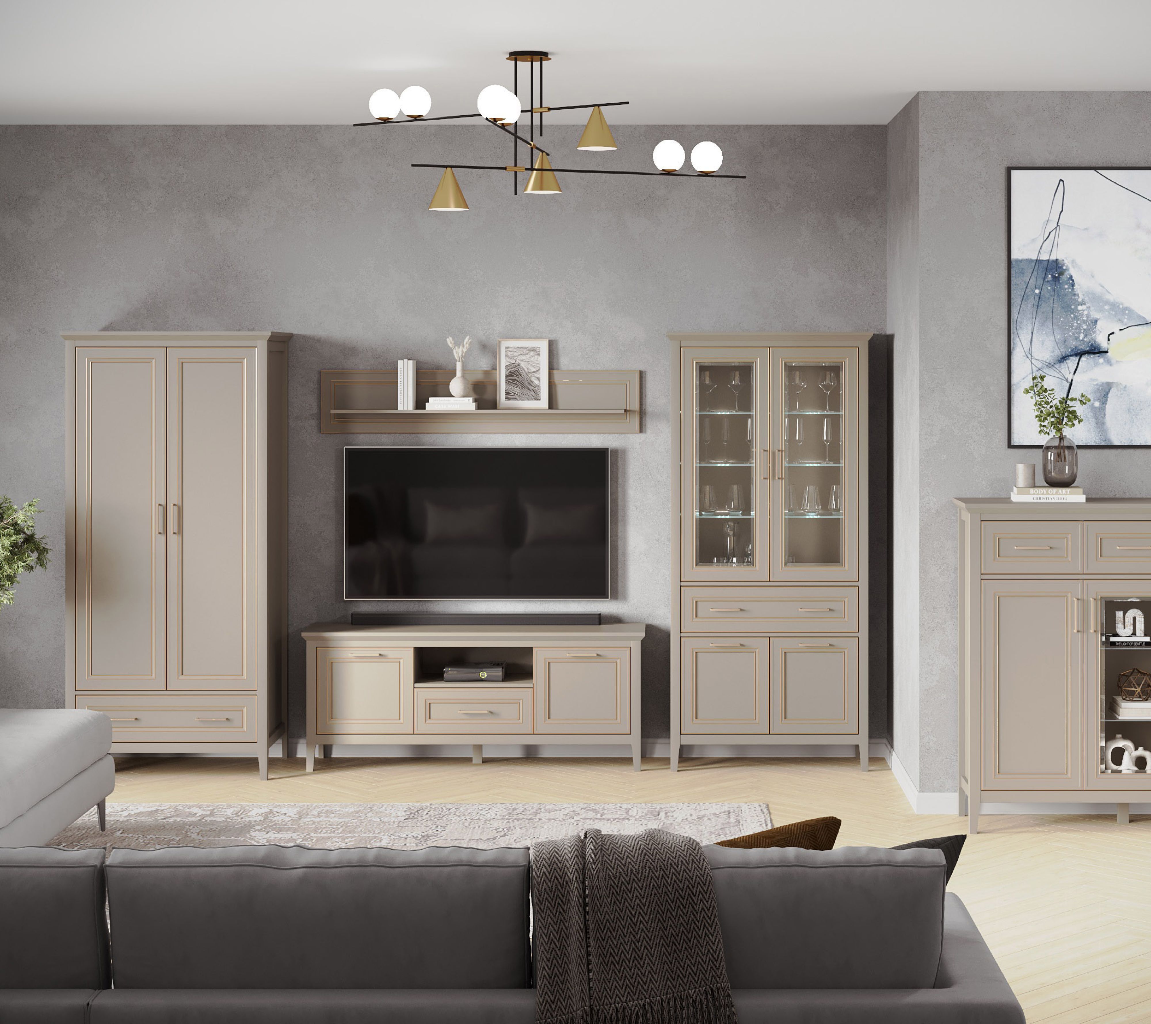 Элегантности шкаф Classic обязан умеренному использованию декора и симметричности конструкции. Рамочно-филенчатые фасады с золоченой отделкой и ручки под медь не требуют дополнения. За счет стандартной конструкции и нейтральной цветовой гамме, такая модель одинаково подойдет гостиной, детской, спальне и коридору.