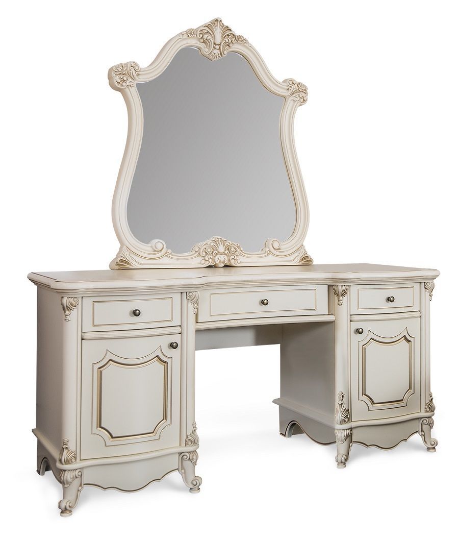 Роскошный и по-королевски неординарный туалетный столик «Мона Лиза». Он создан, чтобы дарить уют и ощущать себя царственной особой. Это мечта, которая легко станет явью и превратит заурядные интерьеры в шикарные хоромы. Такая мебель мысленно возвратит нас во Францию и Версаль, в пышные покои Людовика XIV и времена будуаров. Она подойдет всем, кто хочет ощущать праздник и жить, поддерживая в своем доме атмосферу легкости и итальянского очарования.