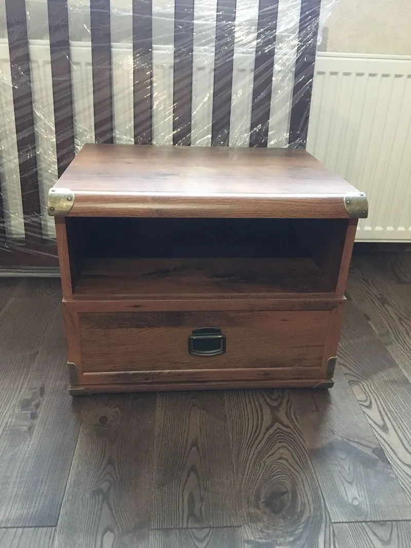Тумбу привезли на второй день после заказа в надежной упаковке, помогли занести на этаж. Со сборкой разобрался самостоятельно. Очень понравилась расцветка: прекрасно подошла к остальной мебели в комнате. А ее винтажный стиль умиляет мою мамулю!
