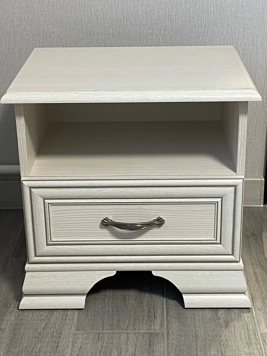 Тумбочку брали к гарнитуру Тиффани специально под цветы. Вписалась хорошо. Сборка простая,инструкция подробная , муж сам собрал за час. Рекомендую.