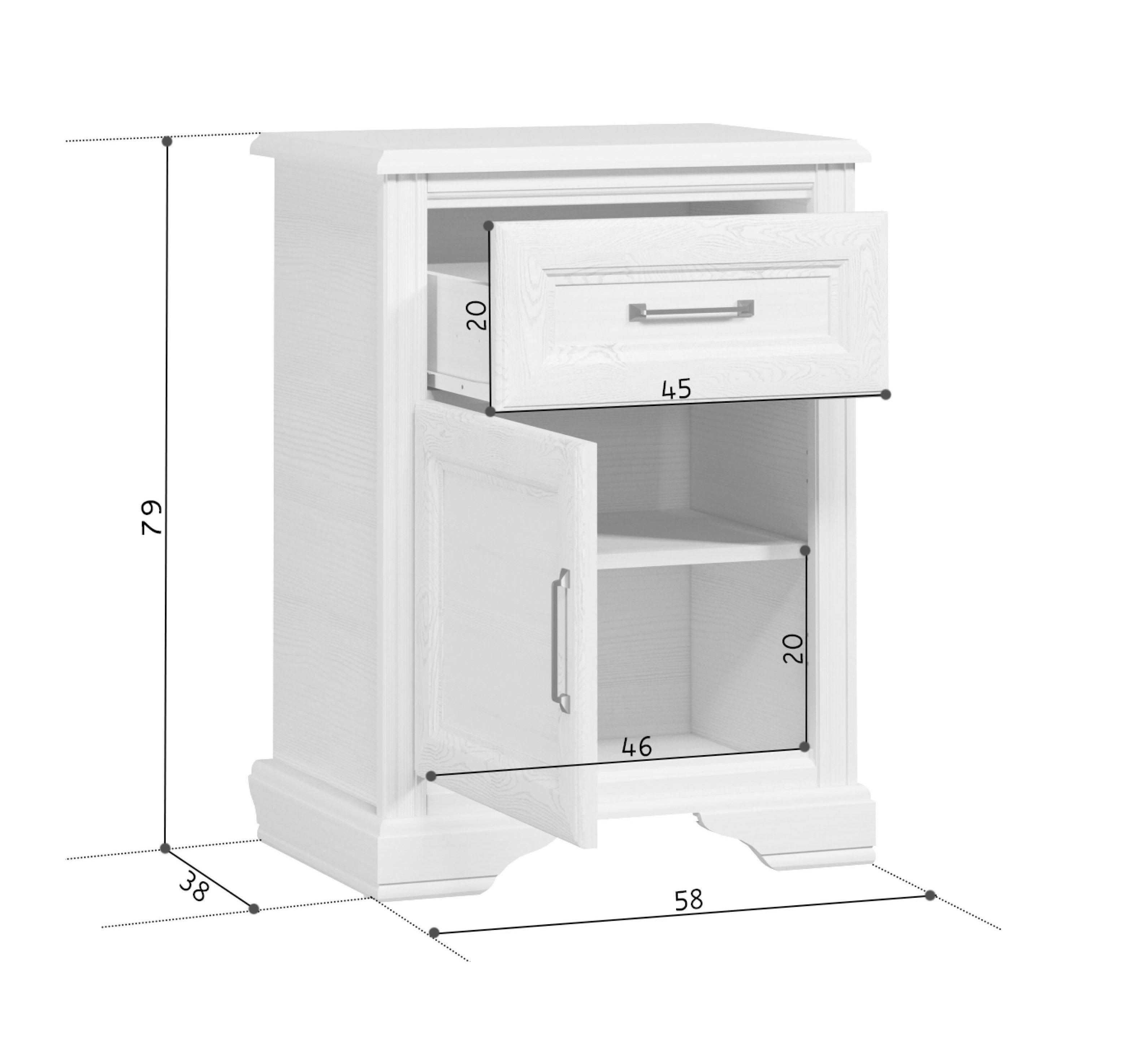 Эта компактная тумбочка шириной 58 см уместится в любом уголке дома: у входа, рядом с кроватью, около стола или шкафа. Она полезна и необходима везде. В детской и спальне такая мебель станет местом для хранения игрушек и мелочей. В прихожей она превратится в незаменимый атрибут для шляп и барсеток, хозяйственных сумок, очков и портмоне. Компактная тумба Stylius с успехом заменит комод и станет частью быта холостяка или семейной пары, стремящейся к уюту и полному порядку в доме.