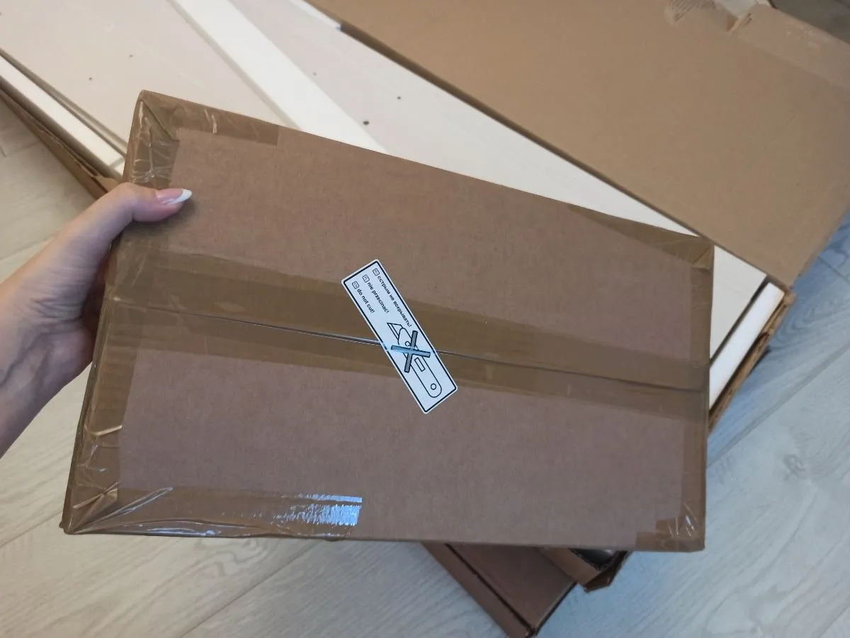 Товар пришёл быстрее чем обещали. Всё хорошо упаковано. Две коробки были немного поцарапанные, зная что внутри есть стекло, я захотела убедиться что оно цело. При мне ребята вскрыли коробки и всё провертли. Стекла целы. Читала в отзывах что нет инструкции, в моих упаковках она есть. Цвет почти Белый. Оттенок больше уходит в розовый нежели в ваниль. При доставке все коробки занесли в квартиру. Позвонили заоанее и предупредили о приезде. Время доставки я указала сама. Есть возможность изменить и день и время. Когда комод будет собран, добавлю ещё одно фото)