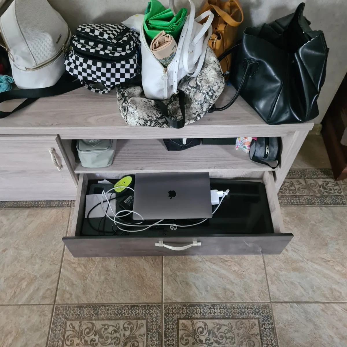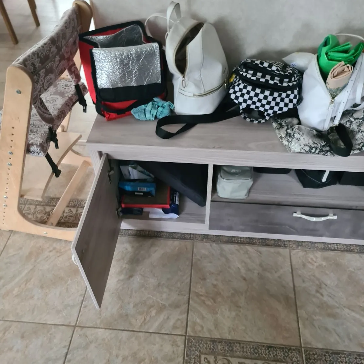Отличная тумбочка, покупали полный гарнитур - сервант, камод и тумбу. Очень нравятся. Купили вначале сервант и поменяли у него ручки. Поэтому когда купили камод и тумбу пришлось тоже заменить.