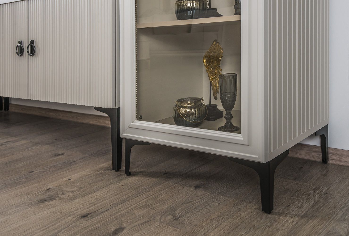 Каждая деталь спальни тщательно продумана, чтобы подарить вам не только максимальный комфорт и эстетическое удовольствие, но и уверенность в высоком качестве мебели. Корпуса и столешницы модулей выполнены из ламинированной древесной плиты европейского качества, Фасады из природного МДФ задекорированы рельефной фрезеровкой и авторский стиль фабрики ЭРА — это финишное покрытие матовая итальянская эмаль ярко серого цвета.