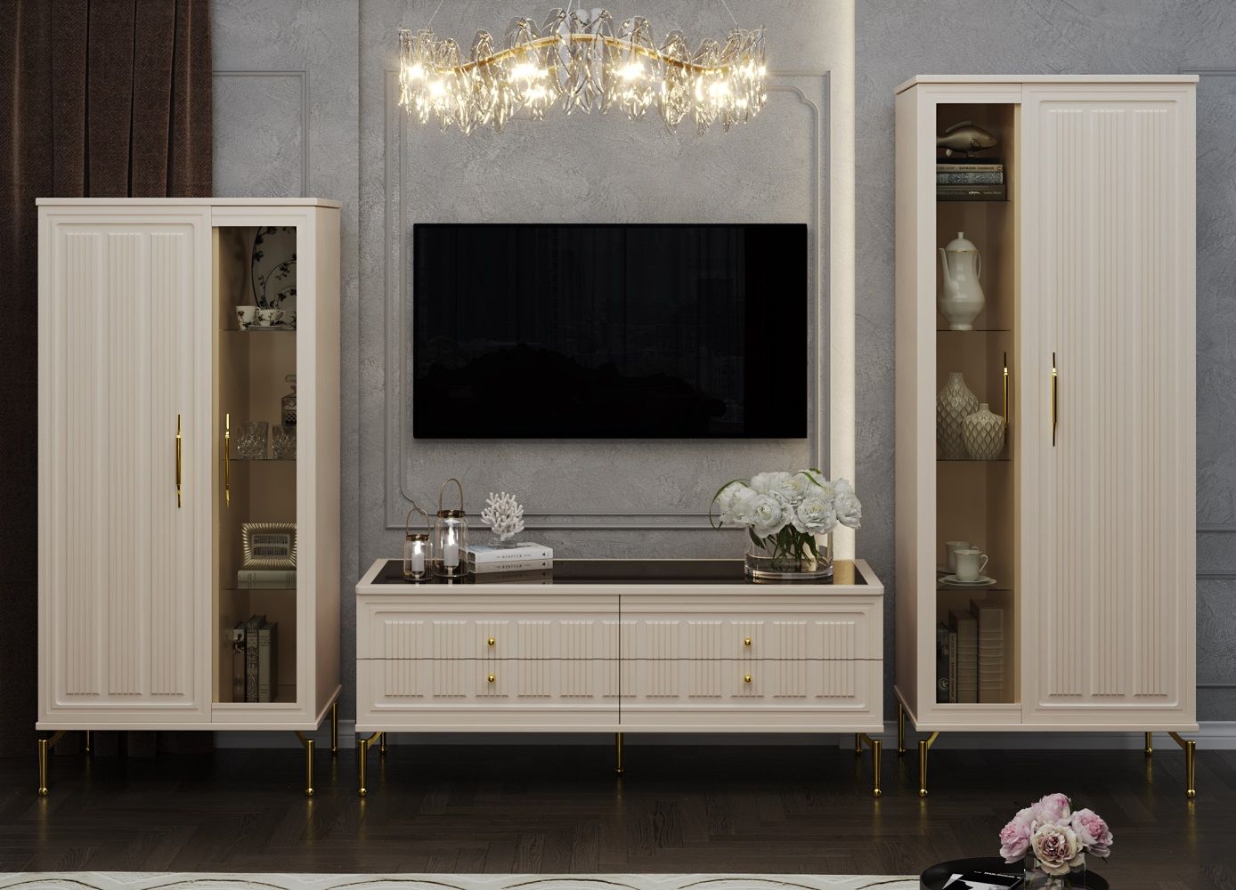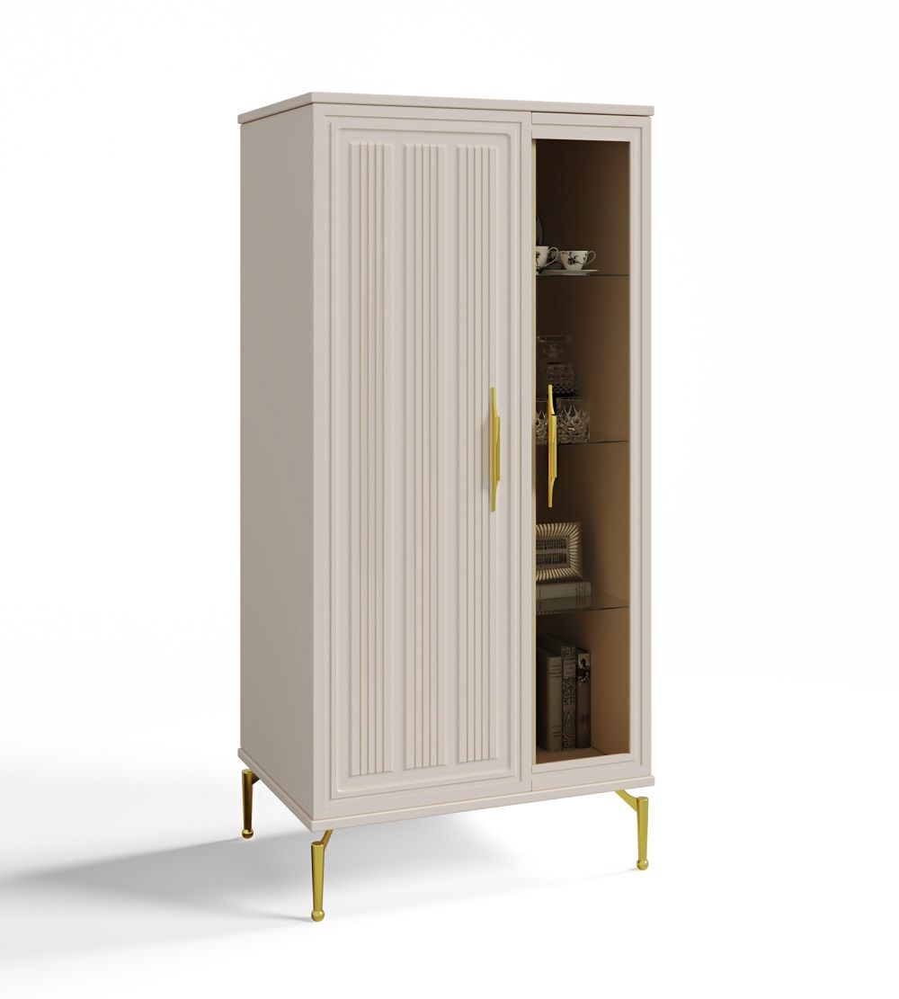 Внутреннее наполнениеШкаф разделен на 2 секции: за щитовой дверью – 4 щитовые полки, за дверью со стеклом – 4 стеклянные полки;
