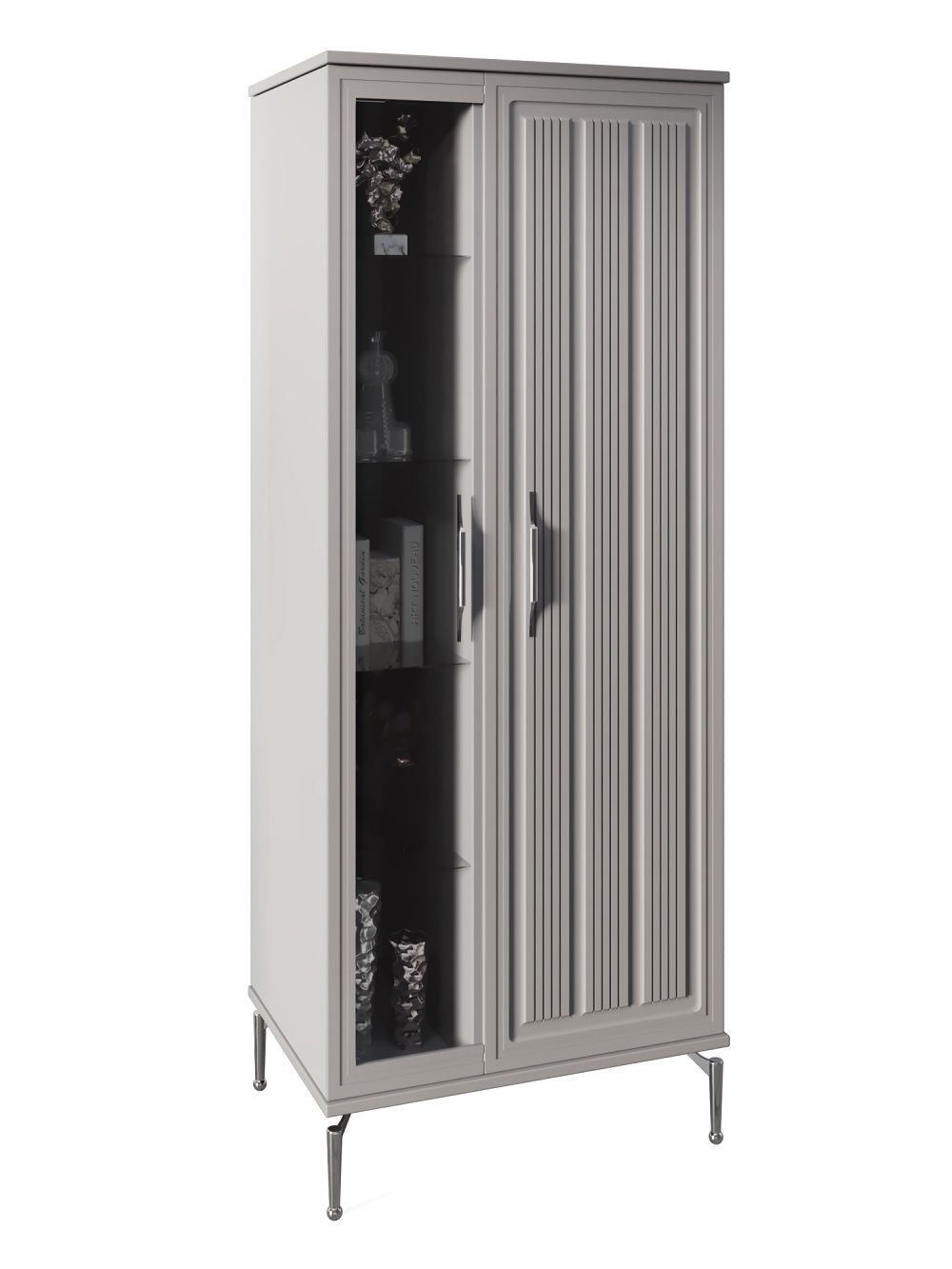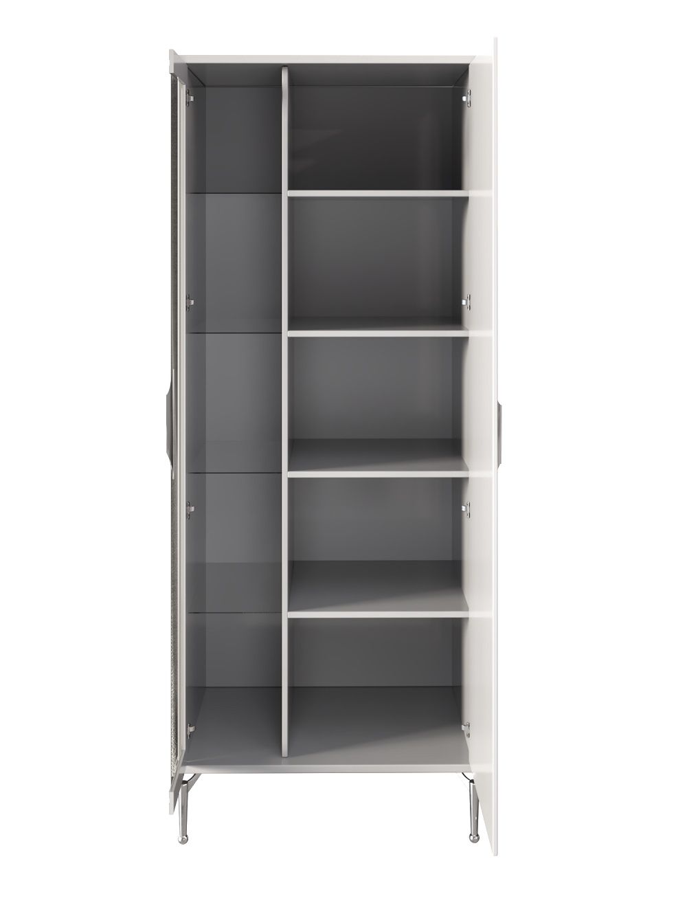 Внутреннее наполнениеШкаф разделен на 2 секции: за щитовой дверью – 4 щитовые полки, за дверью со стеклом – 4 стеклянные полки;